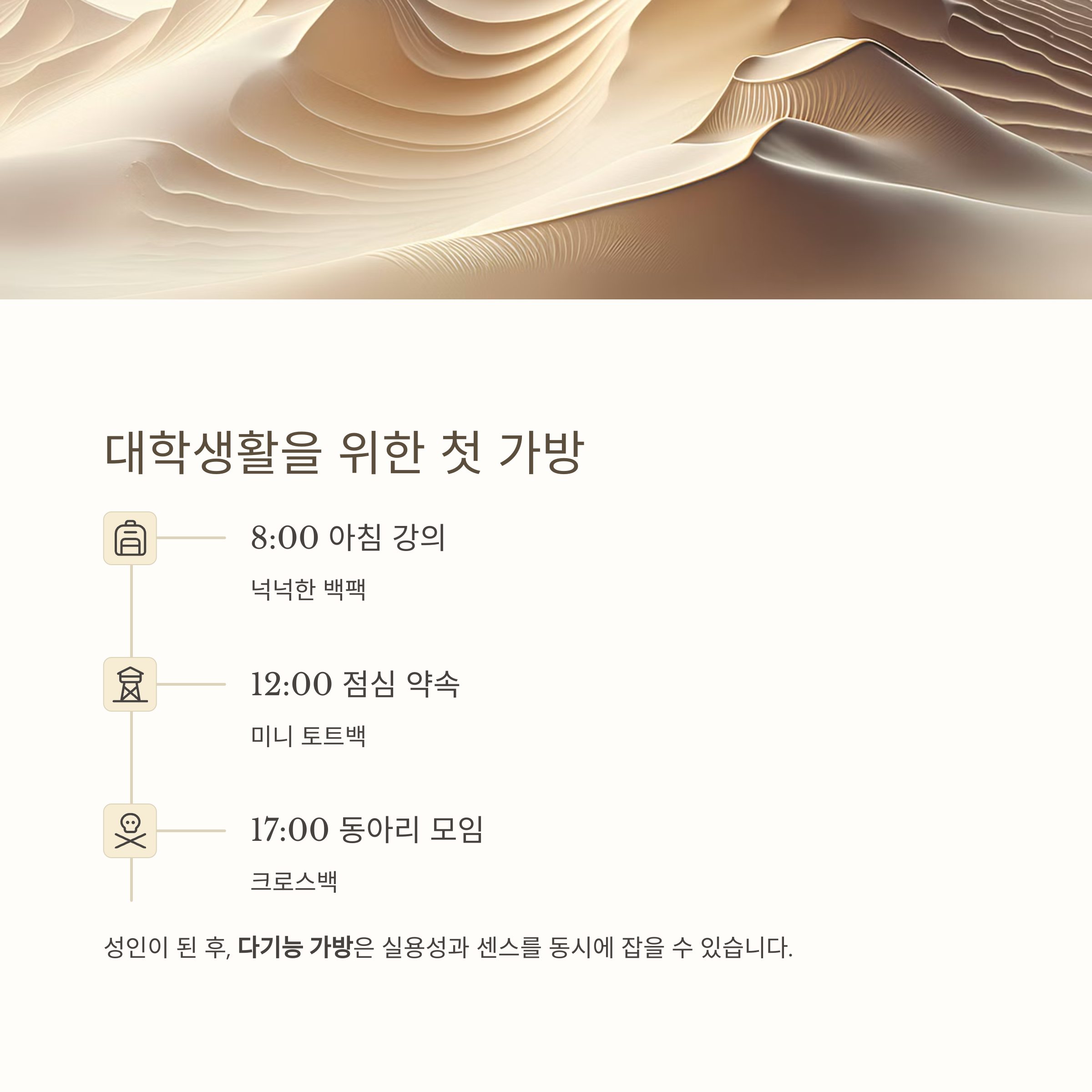 성인이 된 후, 다양한 활동과 라이프스타일을 반영한 다기능 가방은