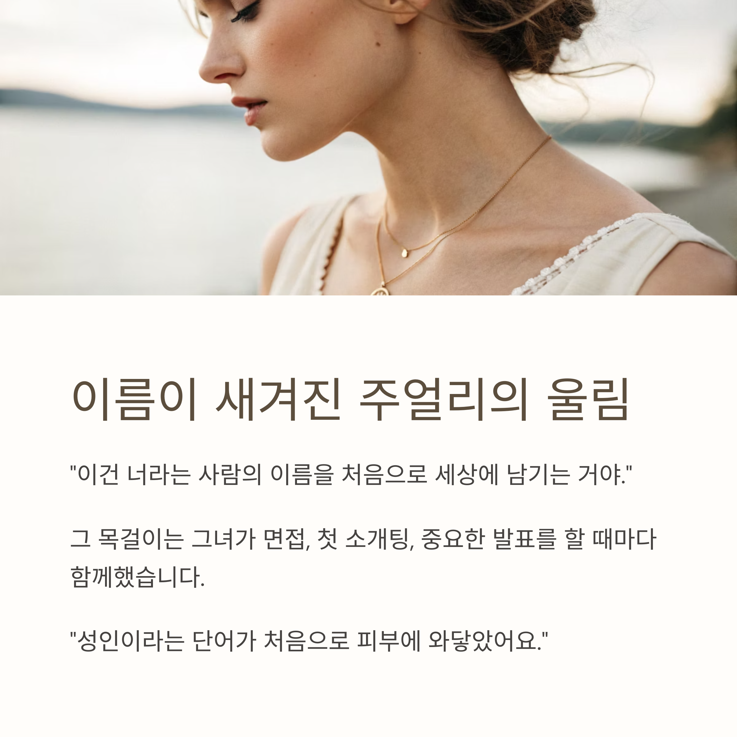 성인이 되는 날, 엄마는 딸에게 이니셜이 새겨진 목걸이를 건넸습니다.