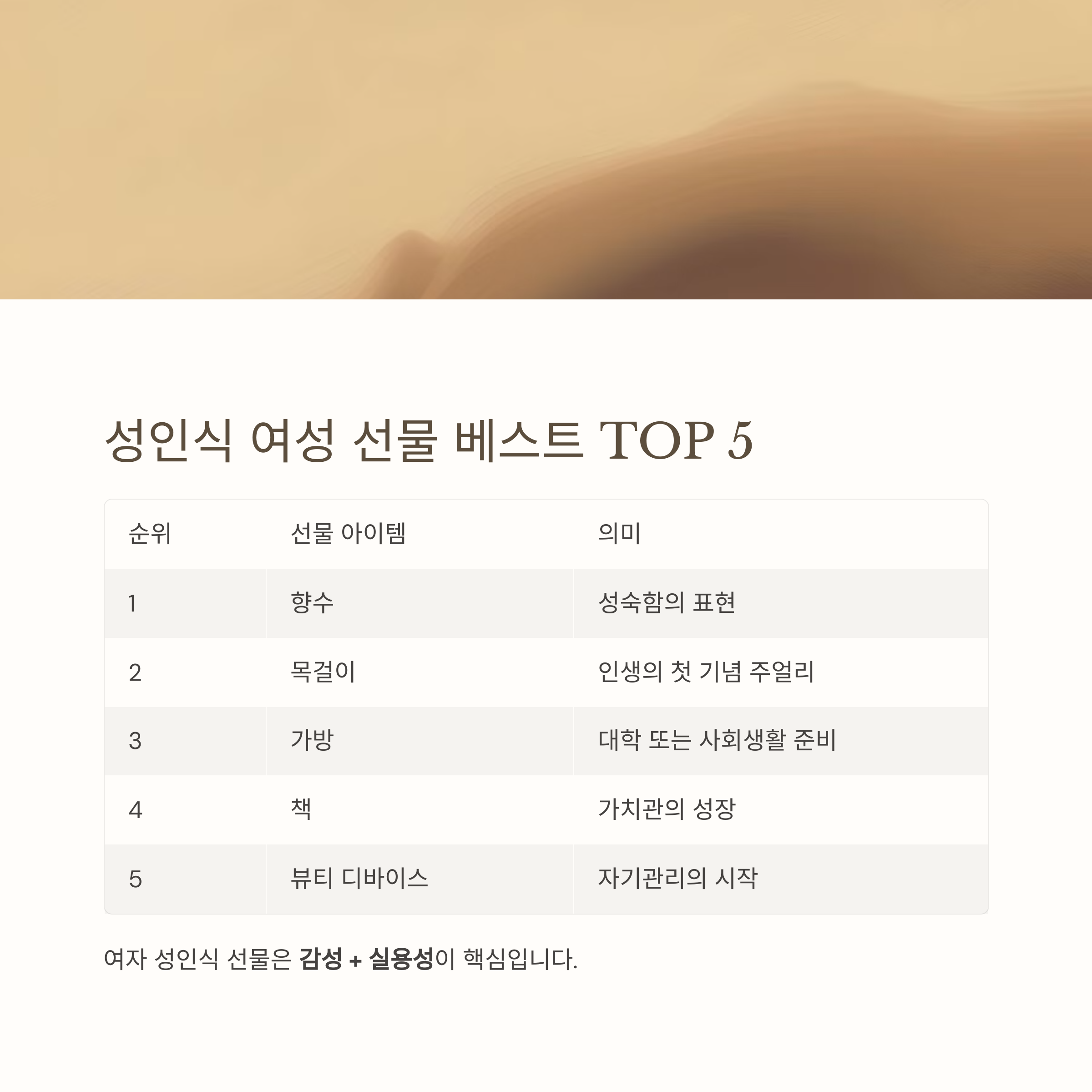 여자 성인식 선물은 감성 + 실용성이 핵심입니다.