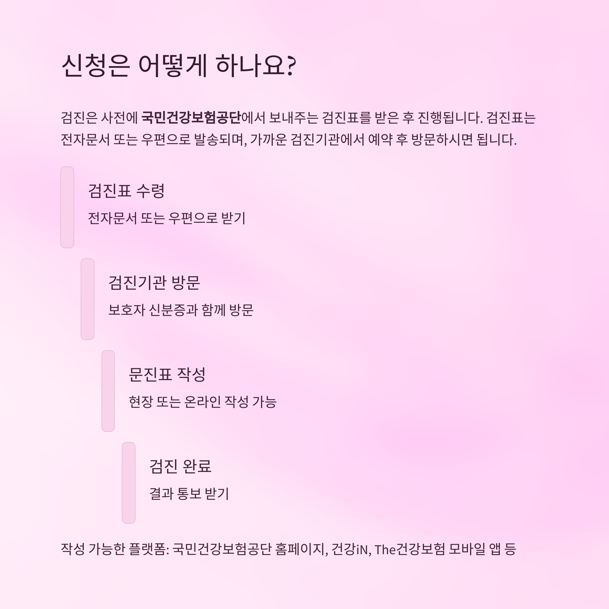 정해진 시기에 무료로 제공되는 국가검진, 우리 아이 건강을 지키는 첫걸음입니다. 놓치지 말고 꼭 챙기세요!
