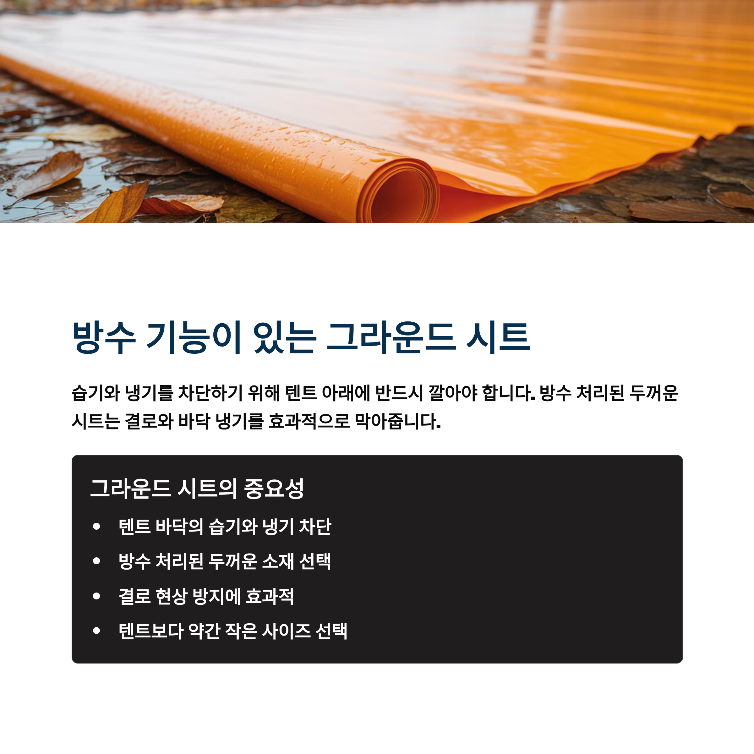 습기와 냉기를 차단하기 위해 텐트 아래에 반드시 깔아야 합니다.