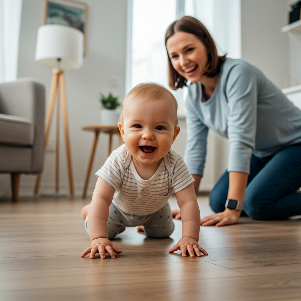 - 쫓고 쫓기는 추격전: 아기가 기어가는 방향을 보며 부모님이 "어디 가~ 아빠가 잡으러 간다~"라고 말하며 천천히 쫓아가세요. 이때, 아기를 잡는 순간 간지럽히거나 안아주면 더욱 재미있어합니다.