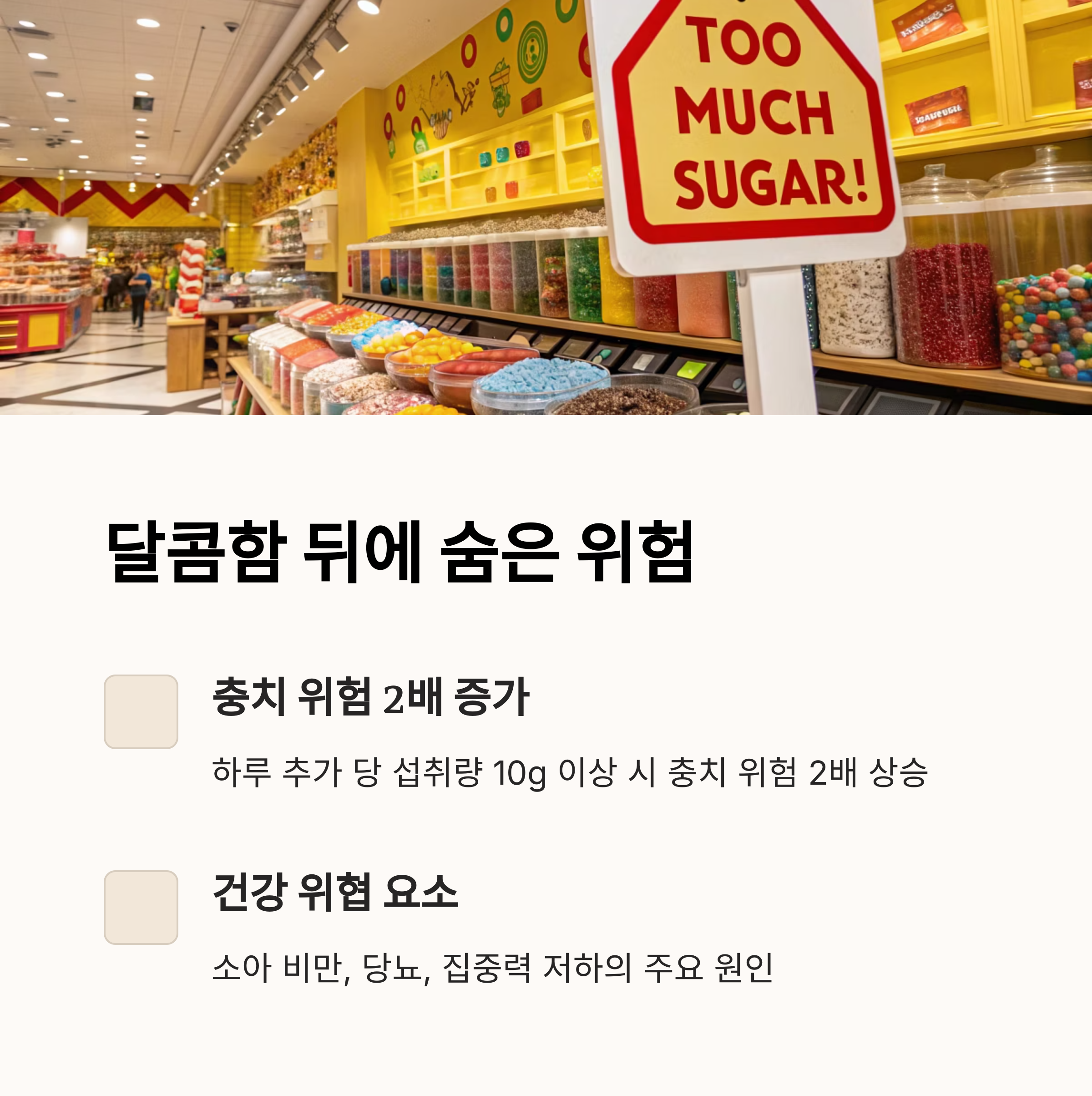 또한 충치, 소아비만, 식욕조절 장애의 원인이 되기도 합니다.