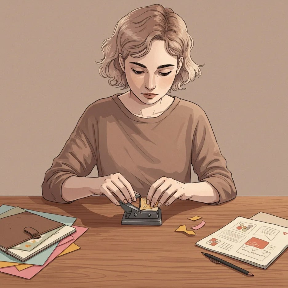 예를 들어, 배경 색상이나 패턴지를 펀치로 잘라 '가짜 우표'처럼 활용하거나, 라벨 위에 덧붙여 입체적인 라벨을 만들 수도 있고요.