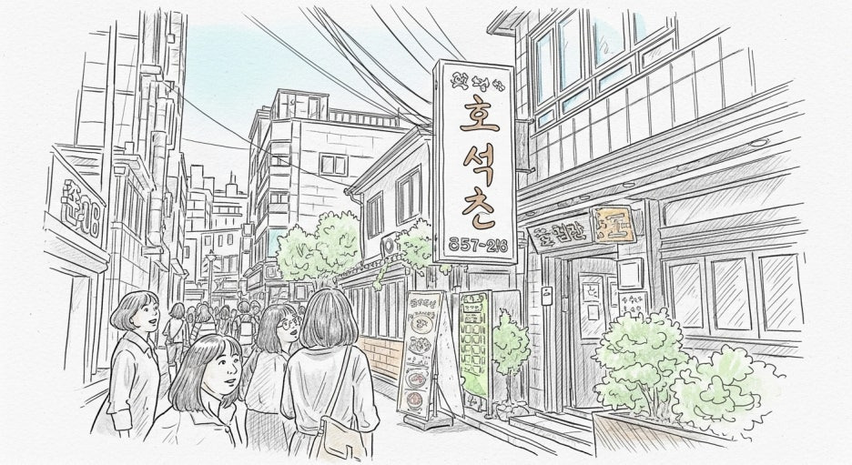 호석촌은 서울 송파구 석촌동, 석촌호수 인근 골목에 자리 잡고 있어요.