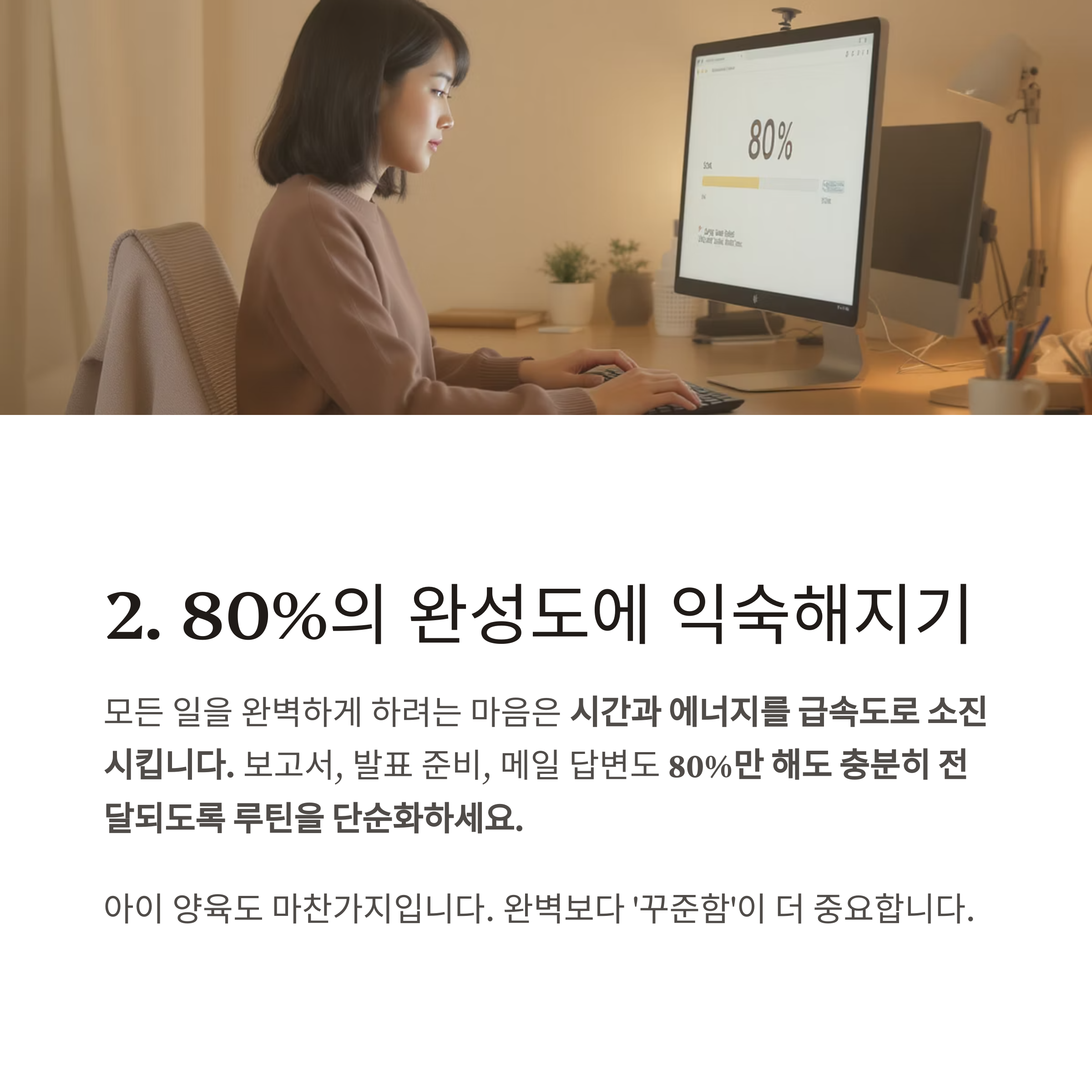 80%만 해도 충분히 전달되도록 루틴을 단순화하세요.