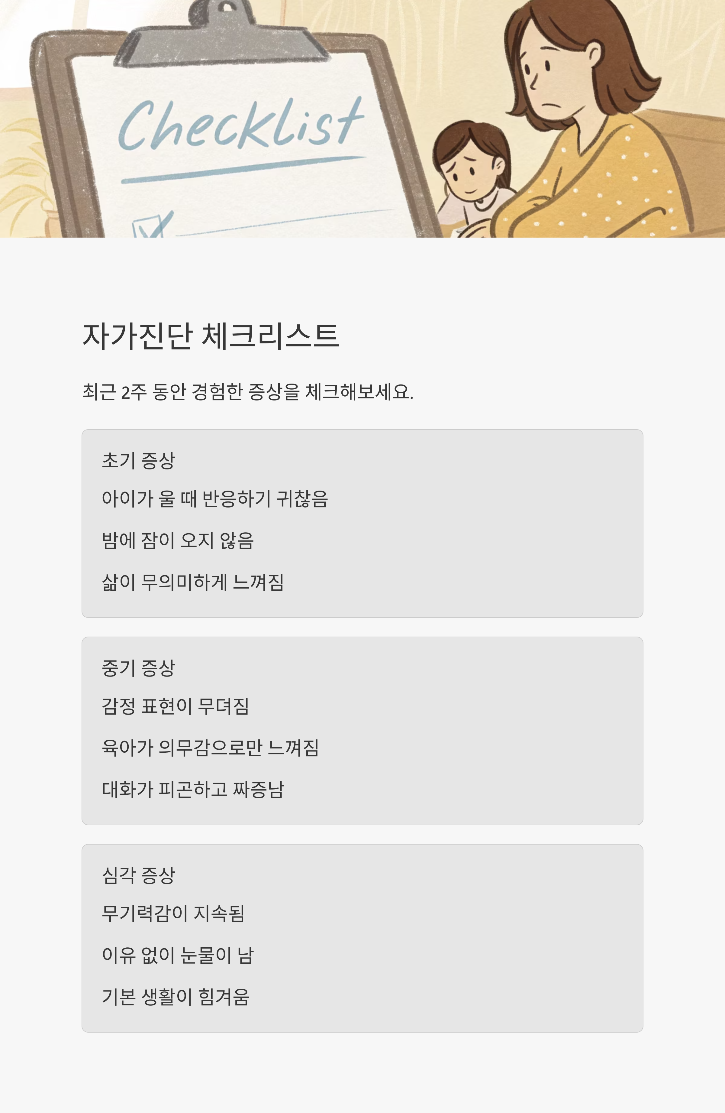 | 8개 이상 | 고위험 상태, 감정적·신체적 붕괴 위험 | 즉시 심리상담 또는 육아 휴식 계획 검토 필요 |