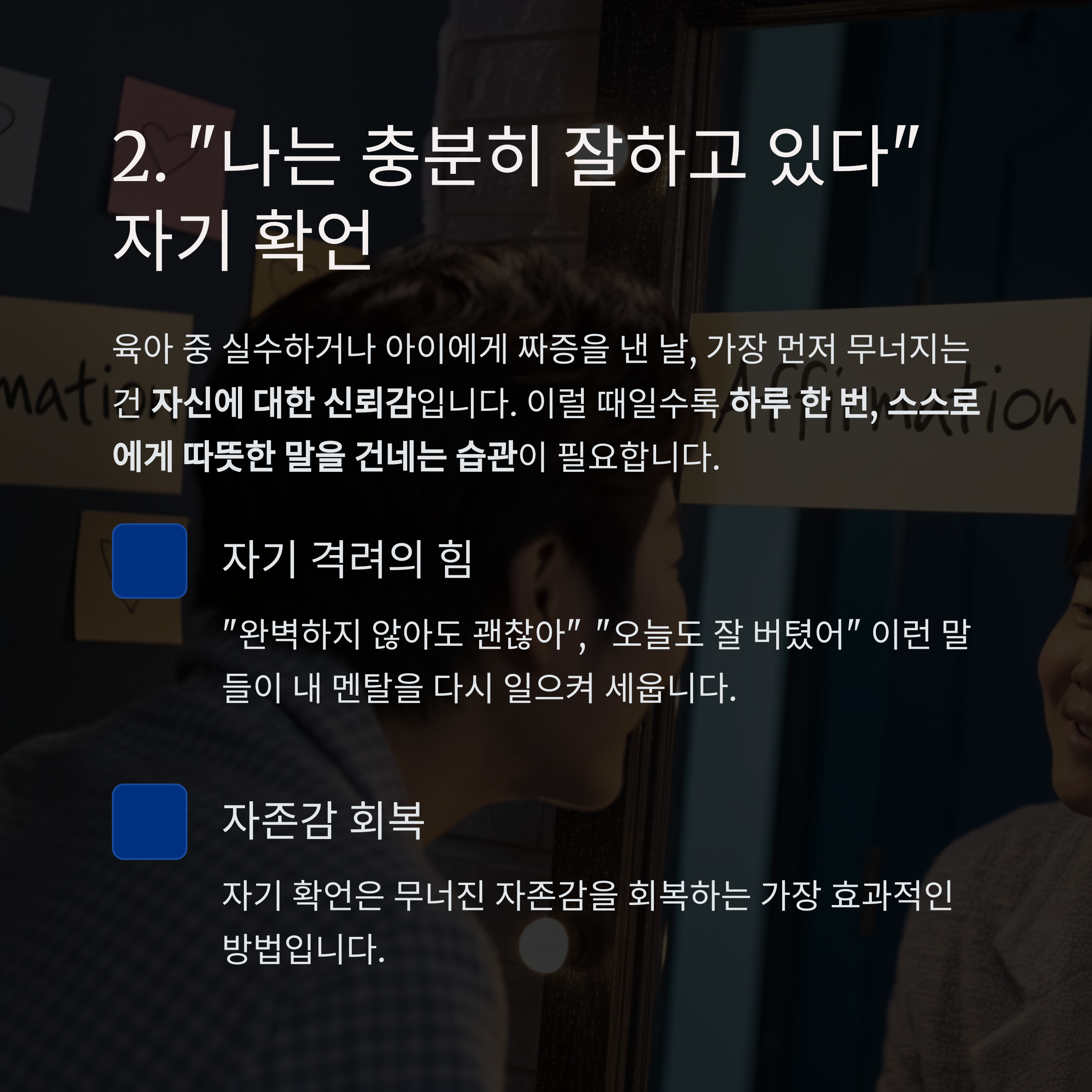 멘탈 관리와 회복 전략이 병행될 때, 비로소 육아는 지속 가능합니다.