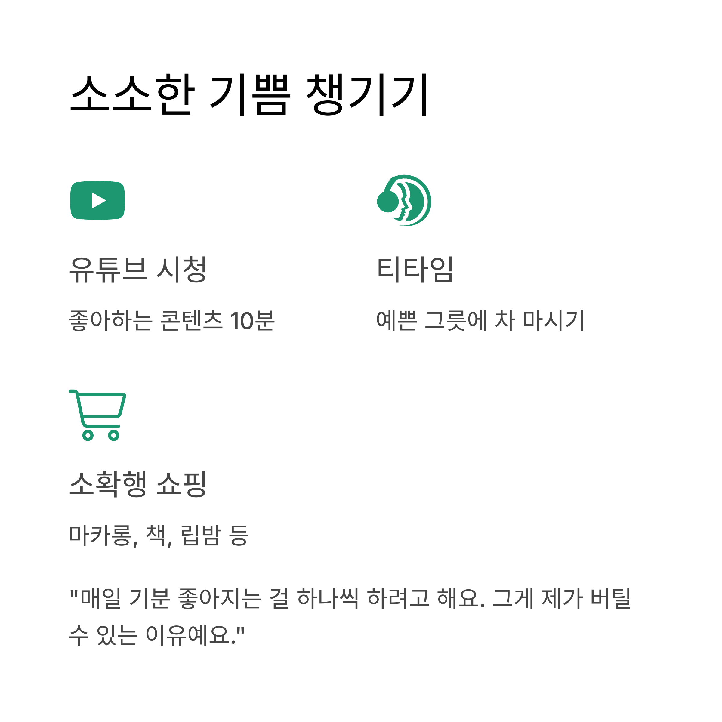 단순하지만 지속되는 작은 행복이 정서 회복의 버팀목이 됩니다.