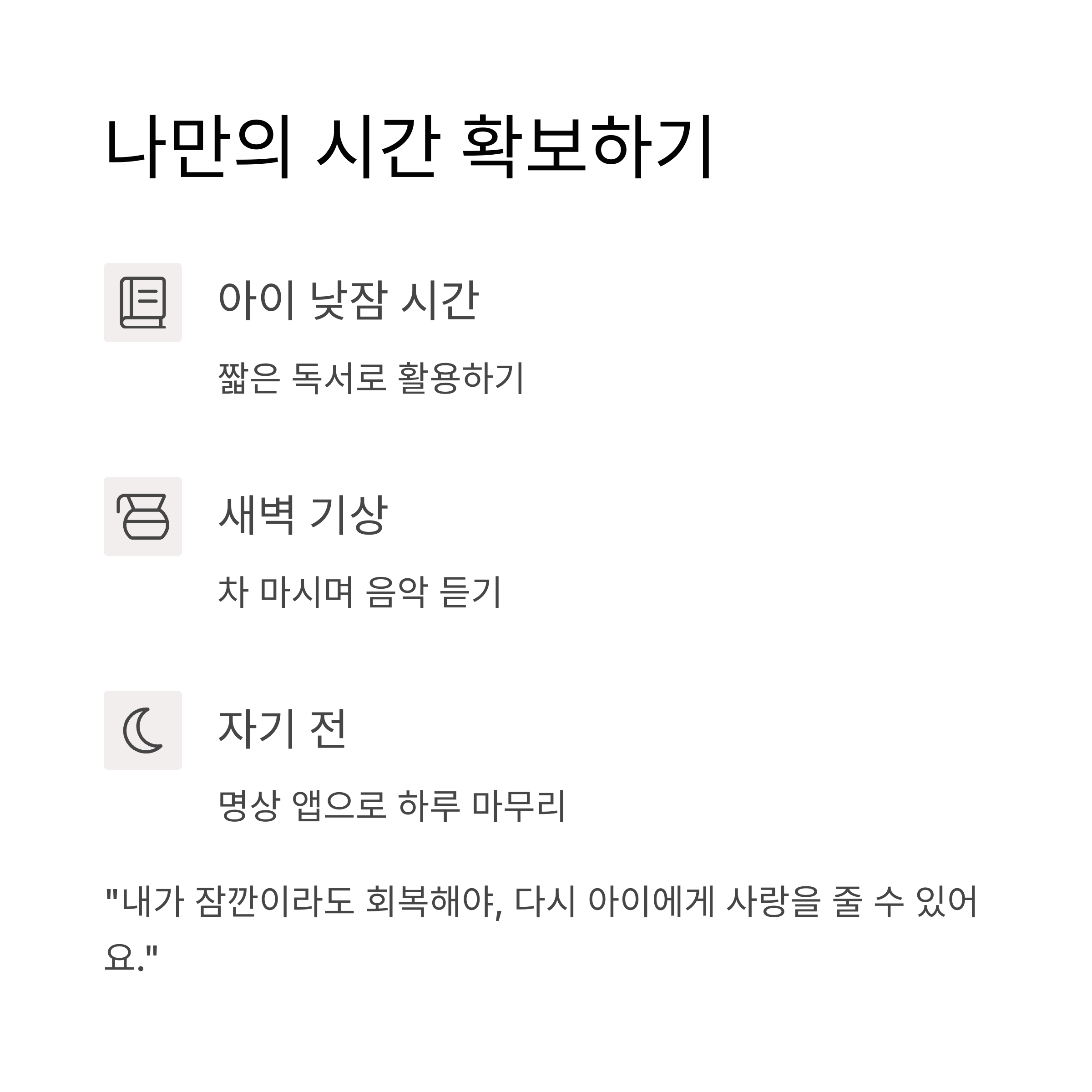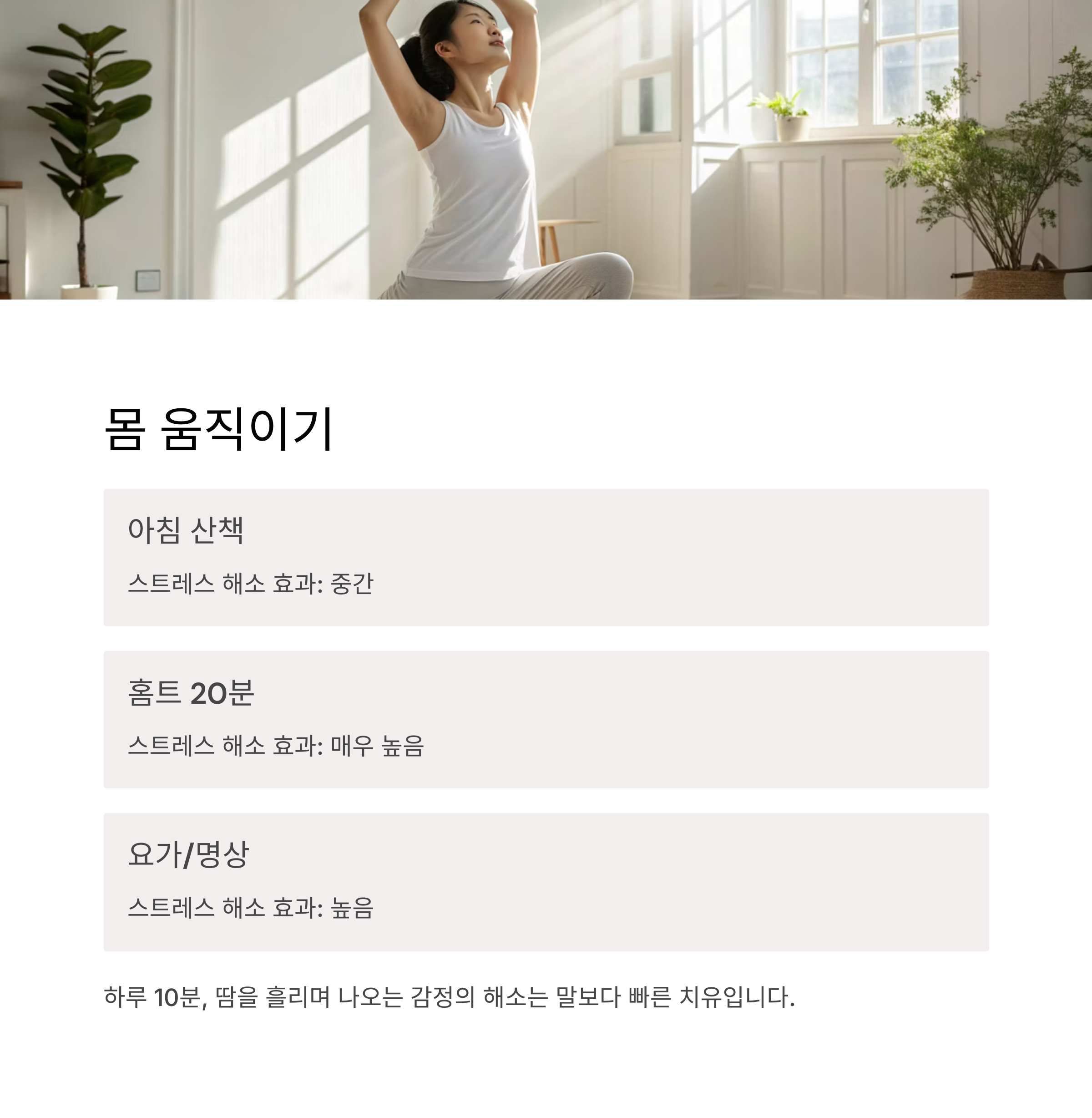 작은 ‘나만의 시간’이 스트레스 회복의 핵심입니다.