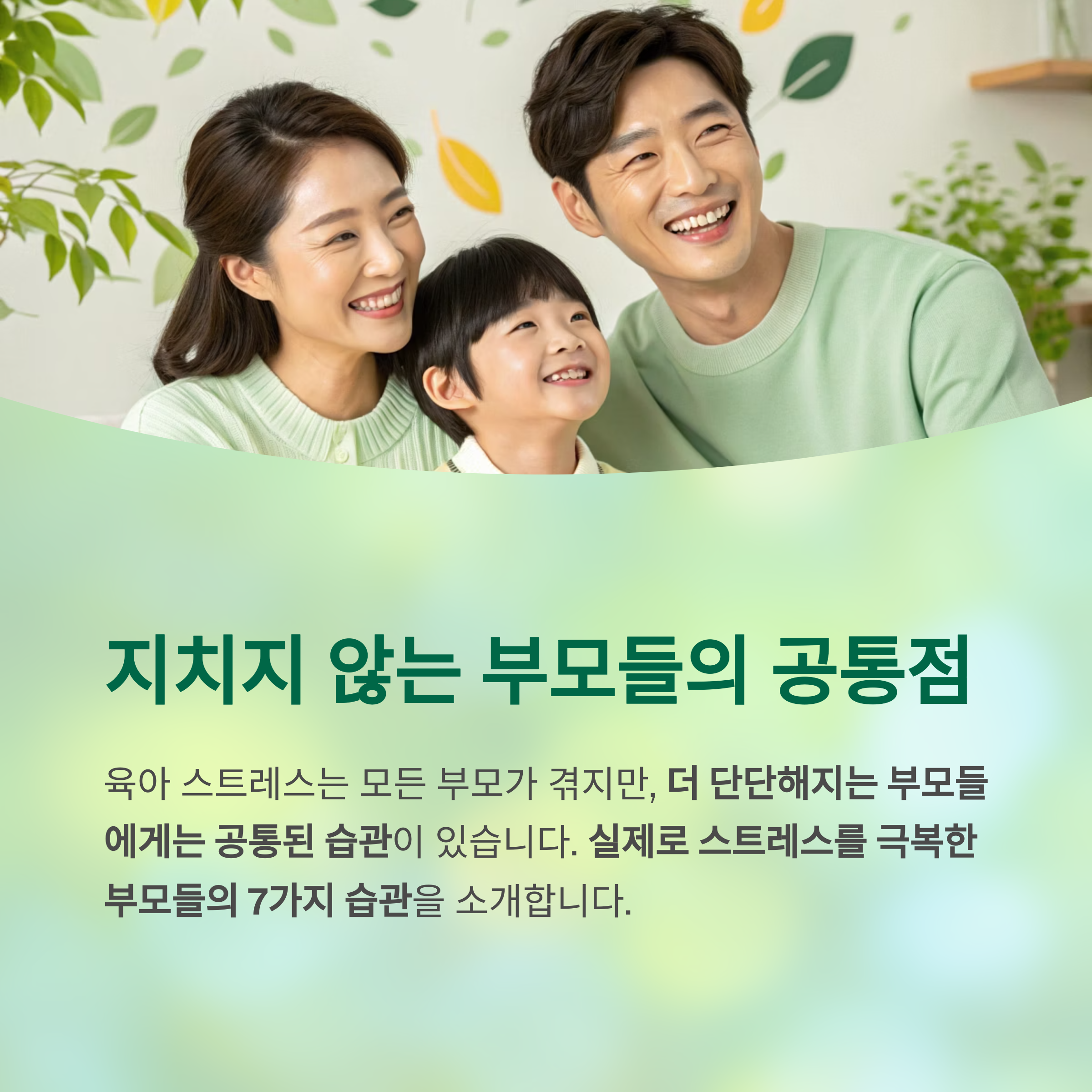 이번 글에서는 육아 스트레스를 극복한 부모들이 실제로 실천하고 있는 습관 7가지를 정리해