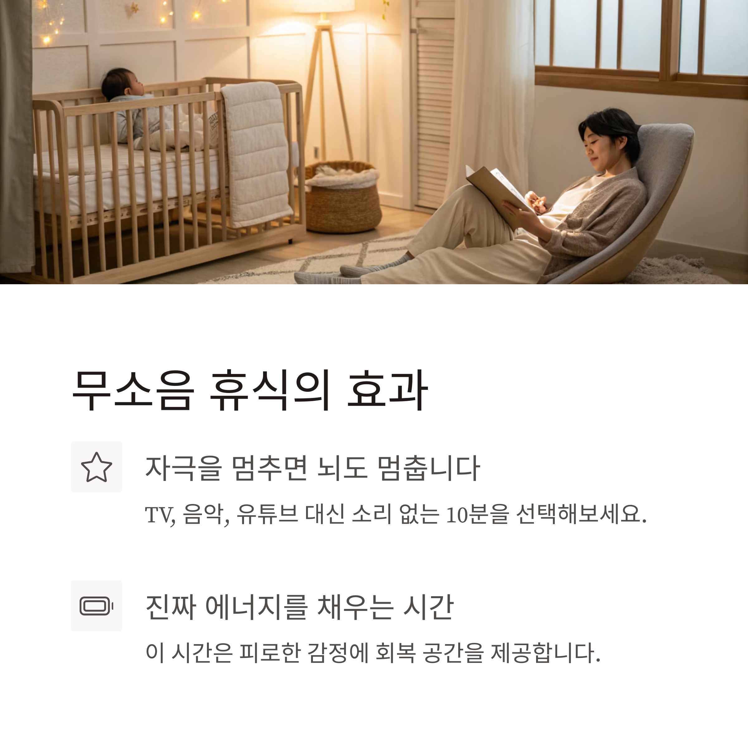 4. 아이가 자는 시간, TV보다 ‘무소음’으로 쉬어보세요