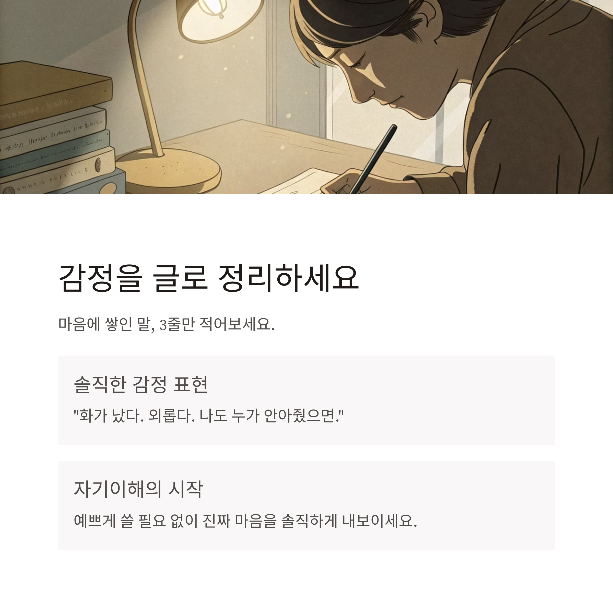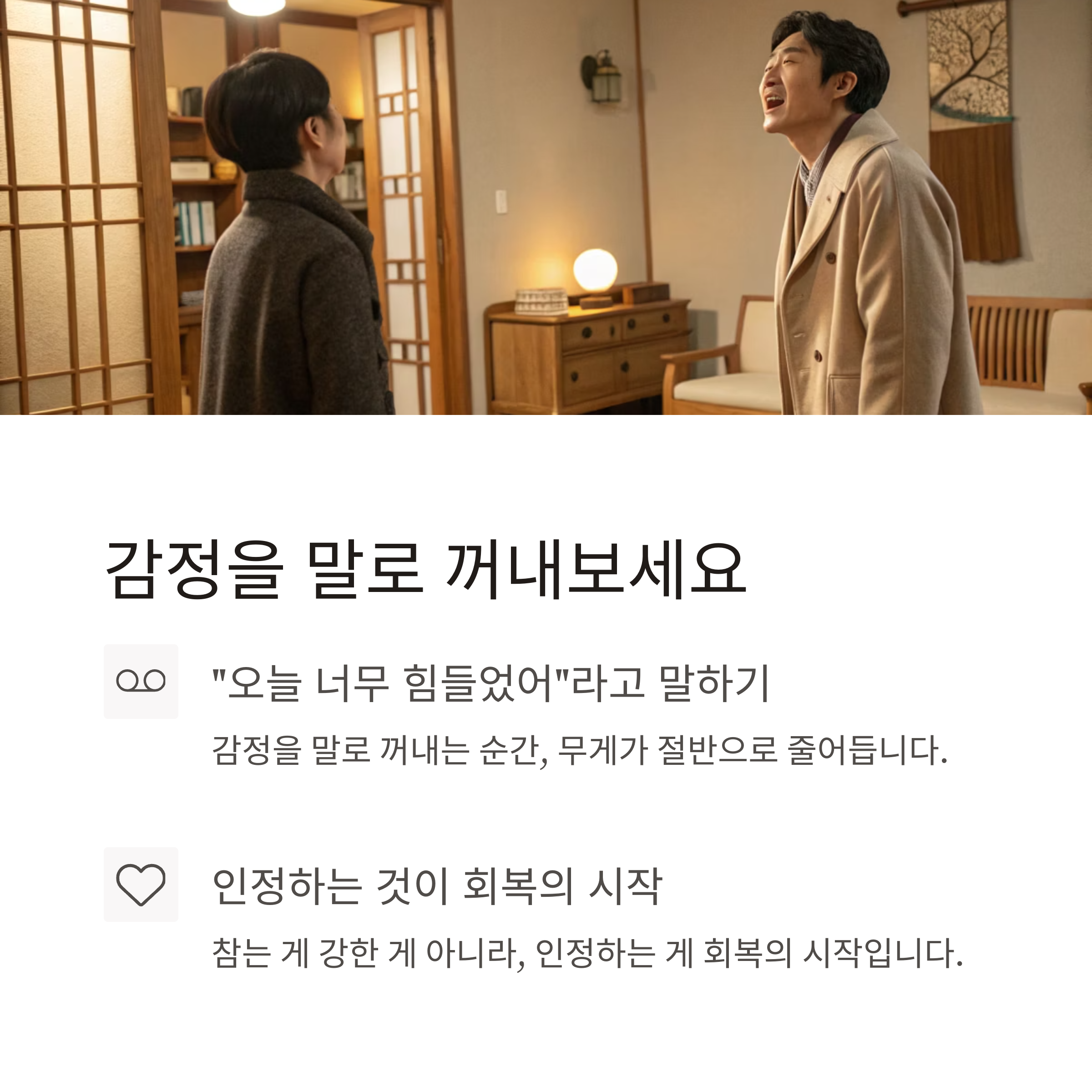 감정을 말로 꺼내는 순간, 무게가 절반으로 줄어듭니다.