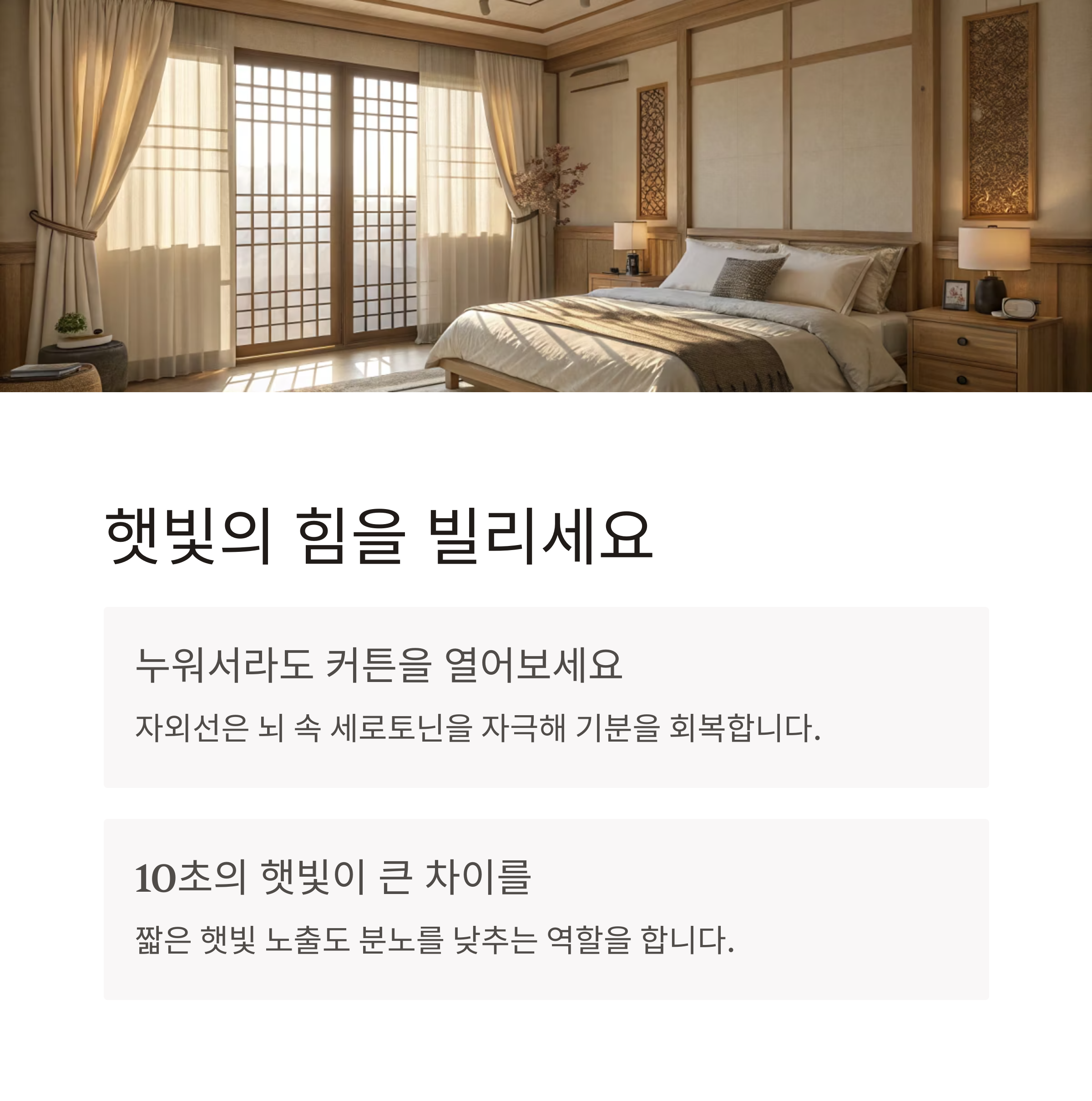 2. 누워서라도 커튼을 열어 햇빛을 받으세요
