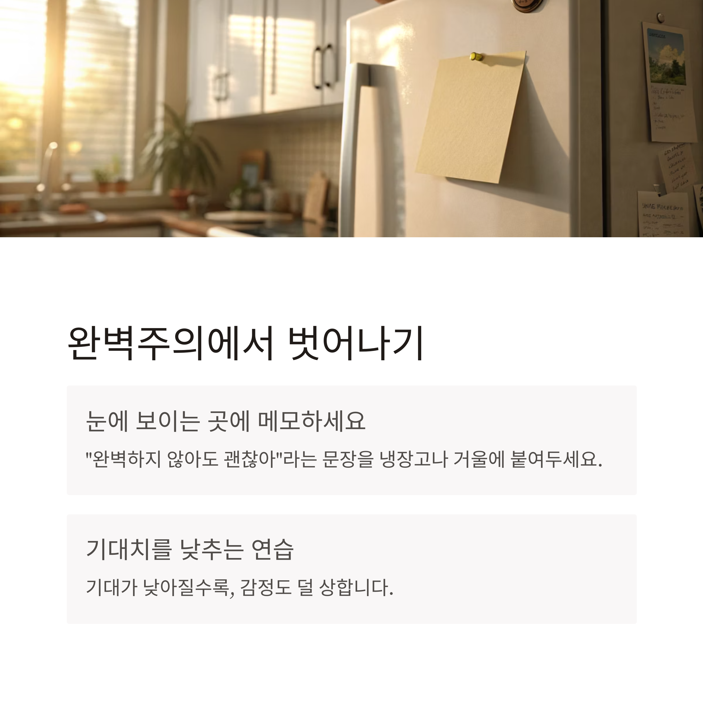7. “완벽하지 않아도 괜찮아”라는 문장, 눈에 보이게 써두세요