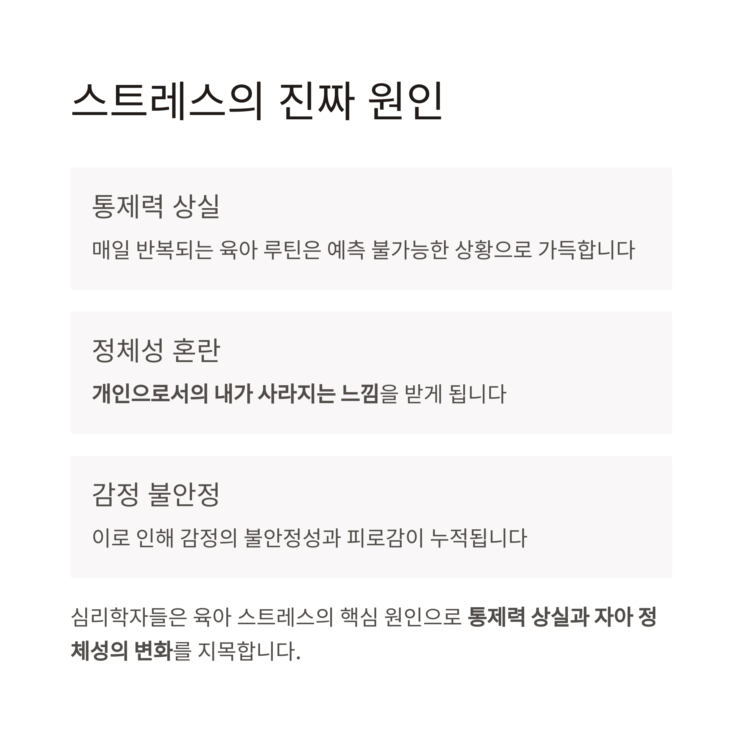 심리학자들은 육아 스트레스의 핵심 원인으로