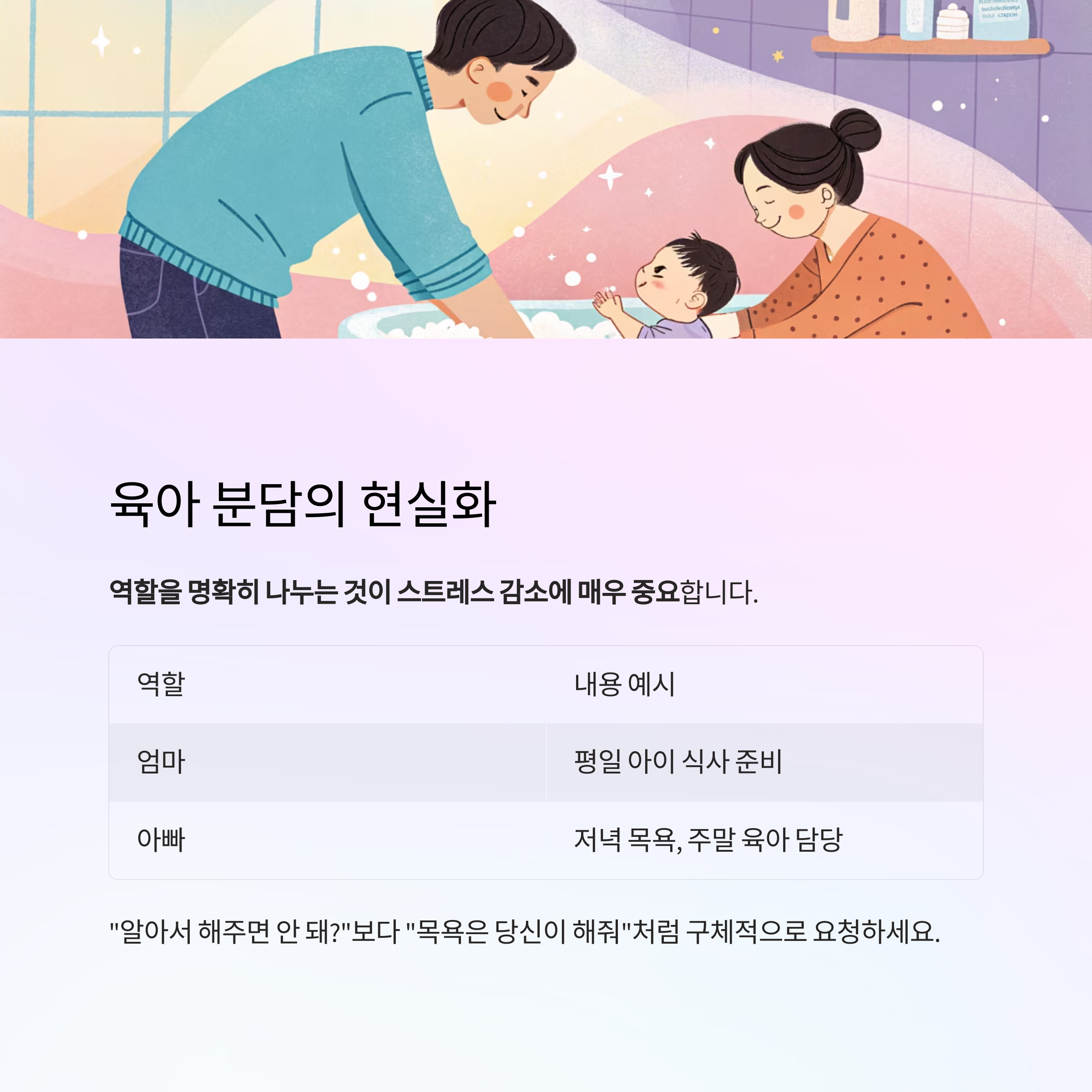 | 아빠 | 저녁 목욕, 주말 육아 담당 |