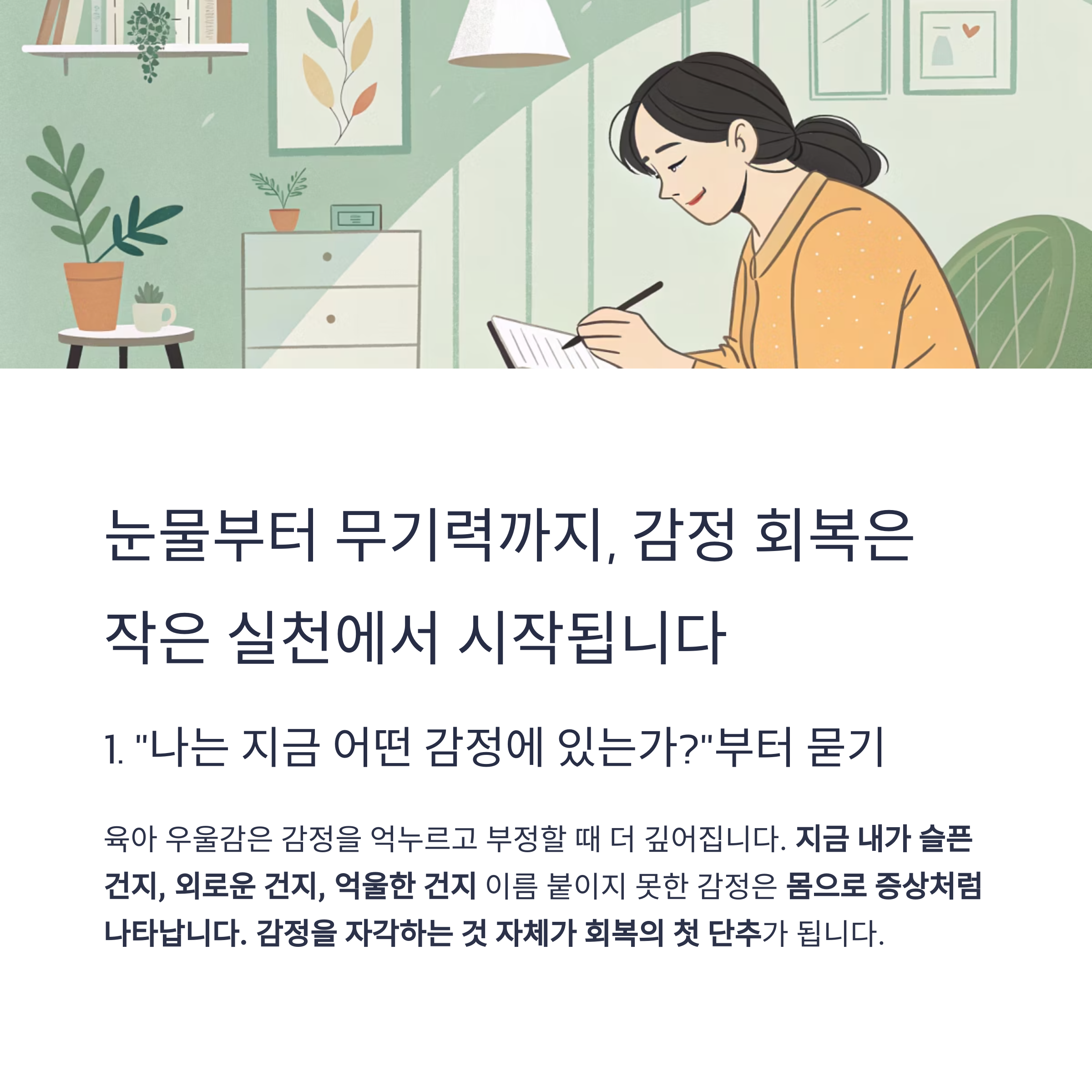 눈물부터 무기력까지, 감정 회복은 작은 실천에서 시작됩니다