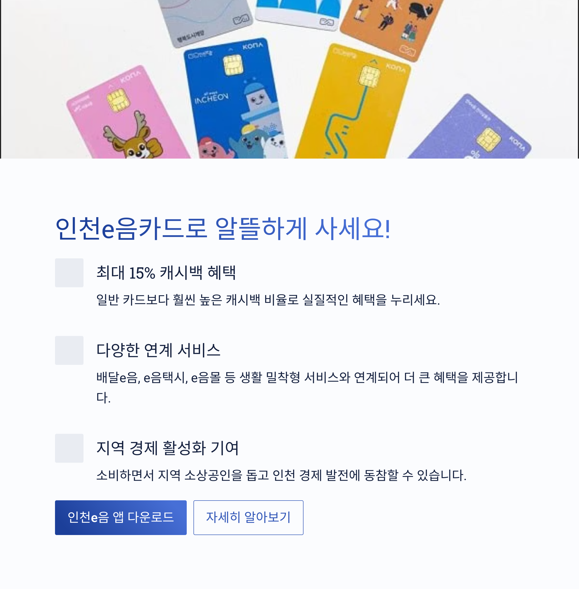 인천e음카드는 인천광역시에서 발행하는 지역화폐로,