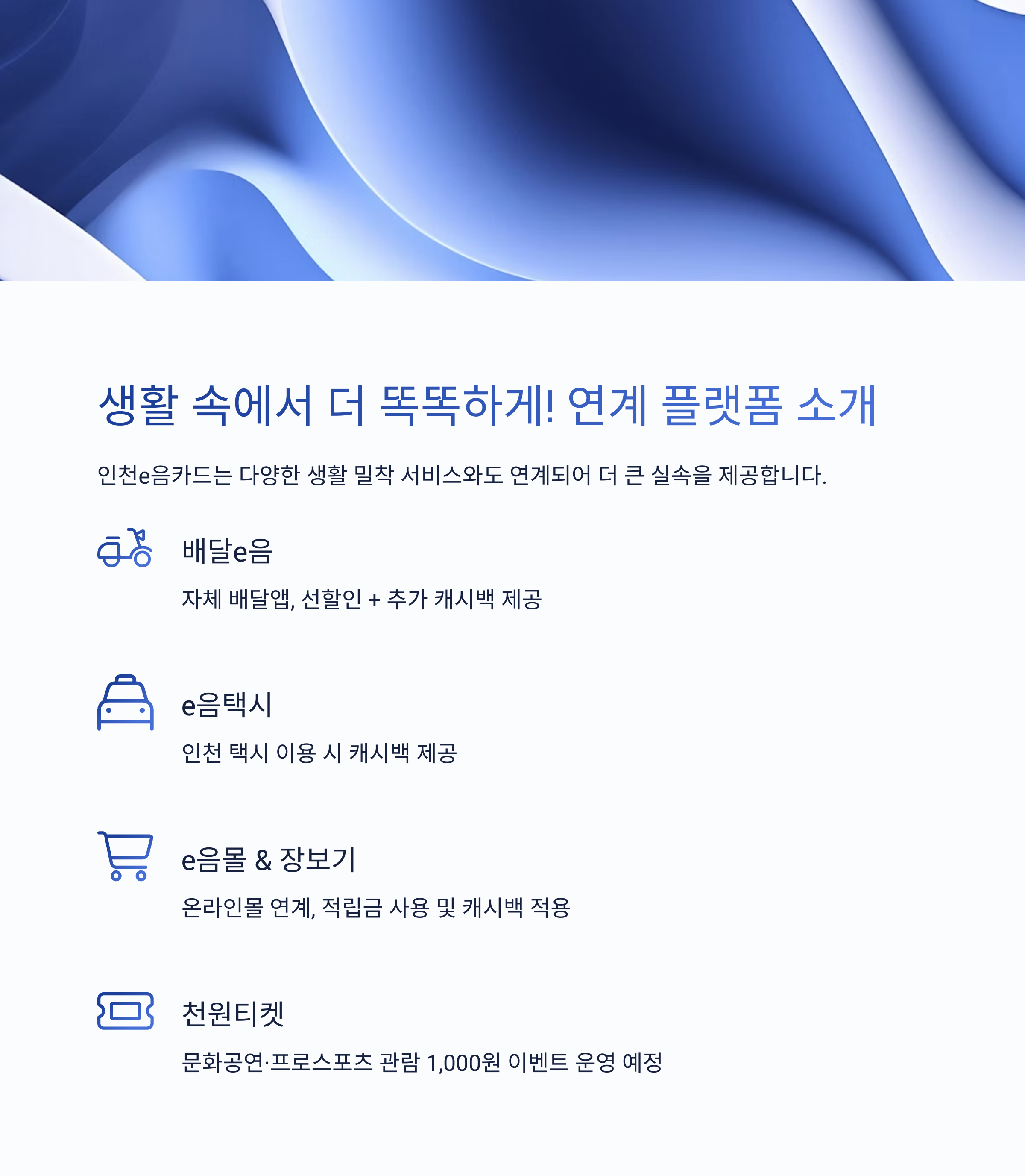 인천e음카드는 다양한 생활 밀착 서비스와도 연계되어