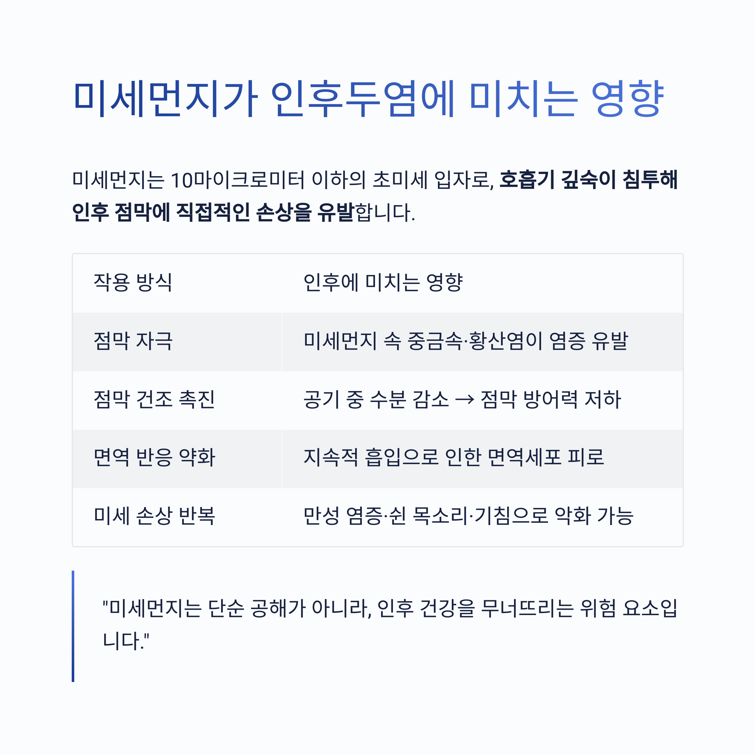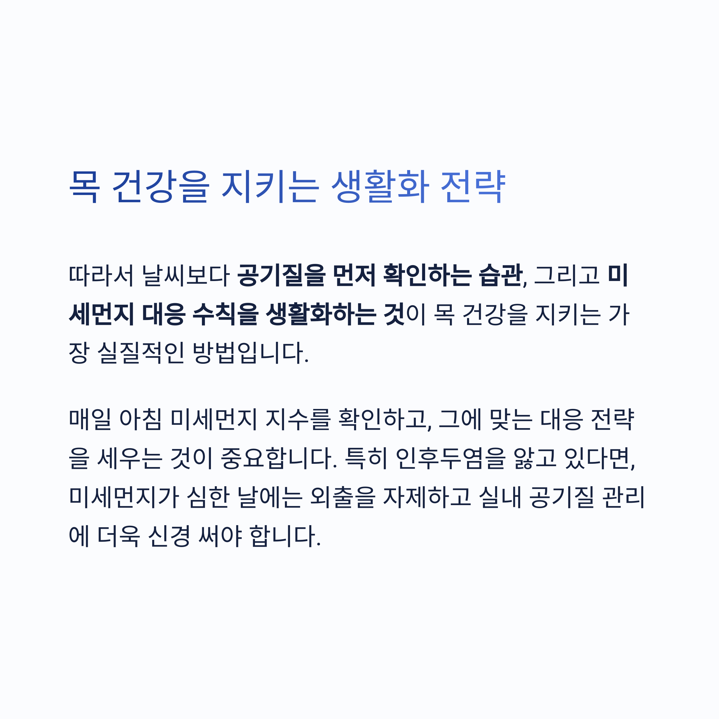 "미세먼지는 단순 공해가 아니라, 인후 건강을 무너뜨리는 위험 요소입니다."