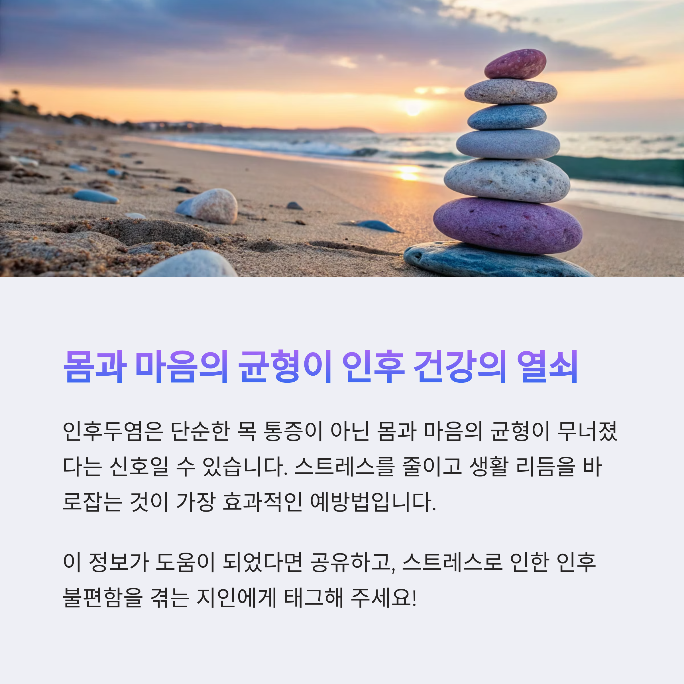 인후두염은 단지 목이 아픈 문제가 아니라, 몸과 마음의 균형이 무너졌다는 신호일 수 있습니다.