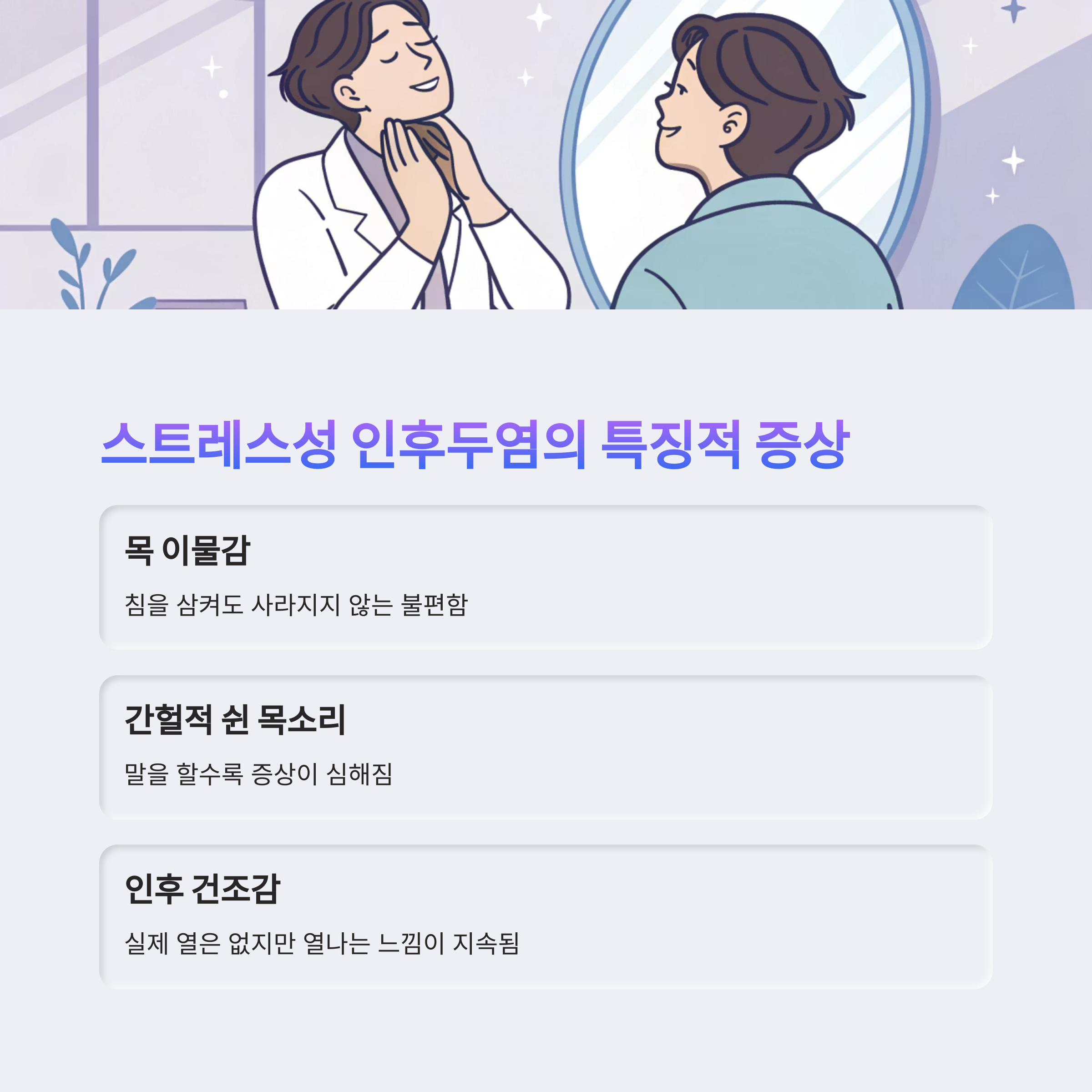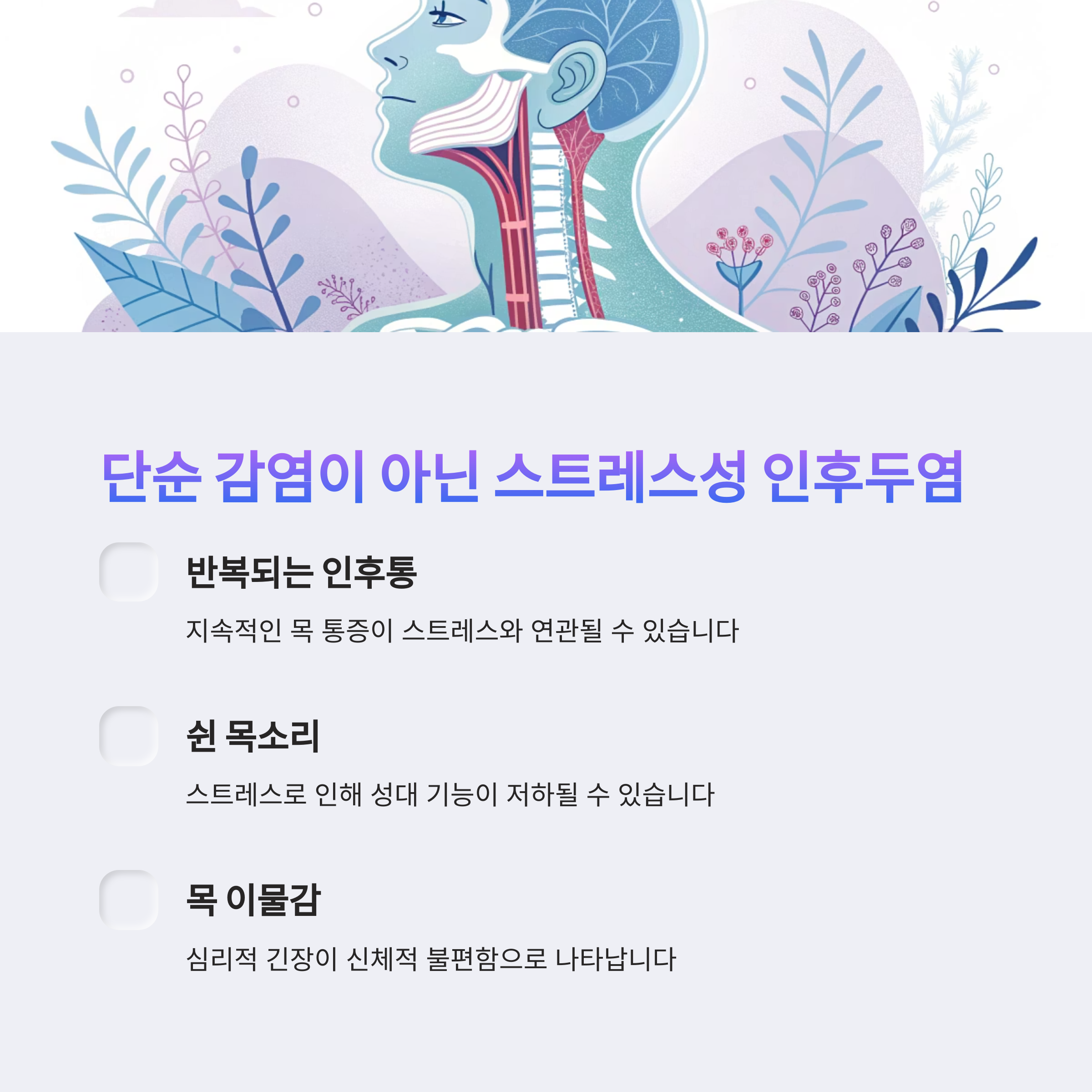 "스트레스로 인한 인후두염은 염증보다 긴장과 예민함이 핵심입니다."