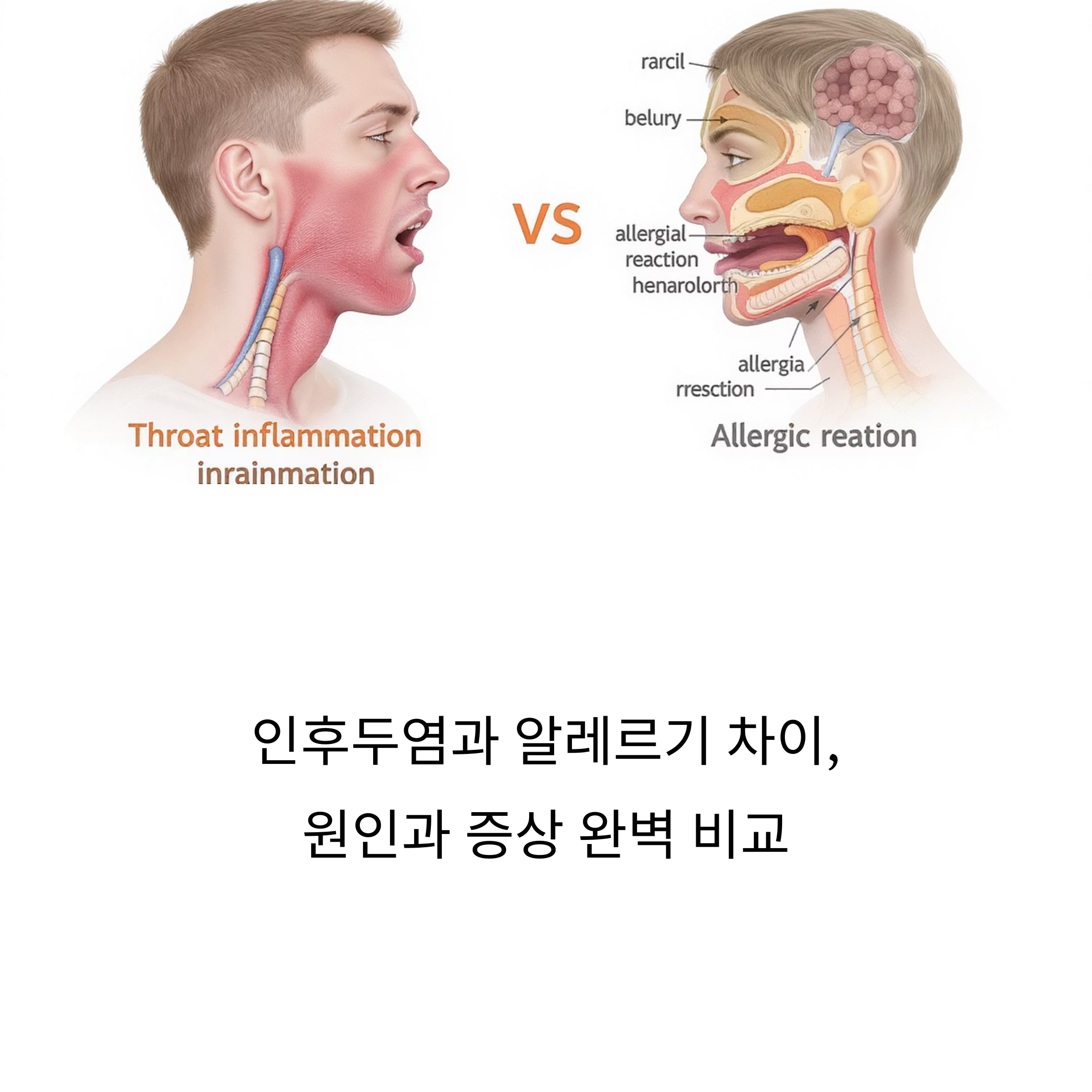 이번 글에서는 인후두염과 알레르기의 차이, 각각의 원인·증상·치료법까지 한눈에 비교해드립니다.