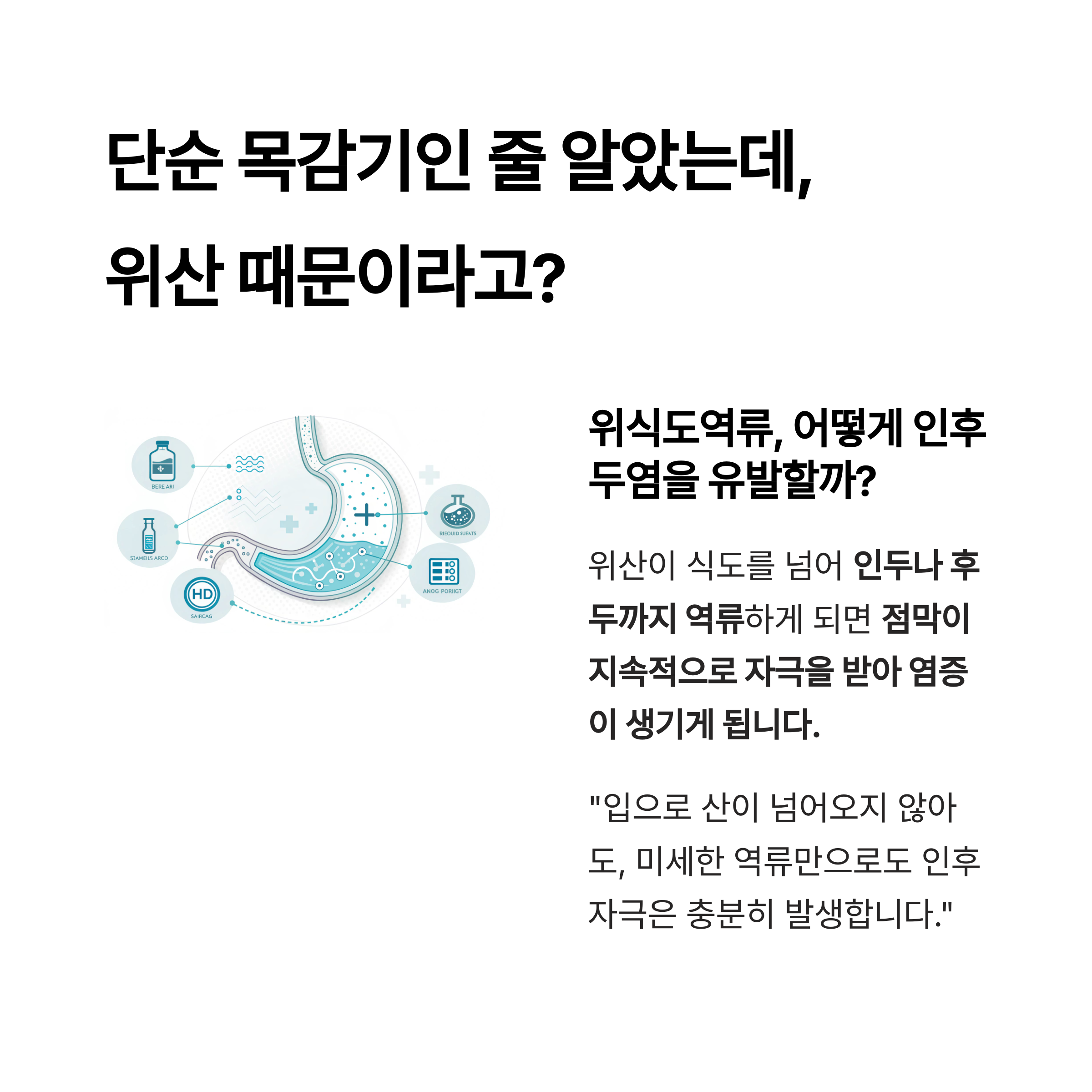 "입으로 산이 넘어오지 않아도, 미세한 역류만으로도 인후 자극은 충분히 발생합니다."