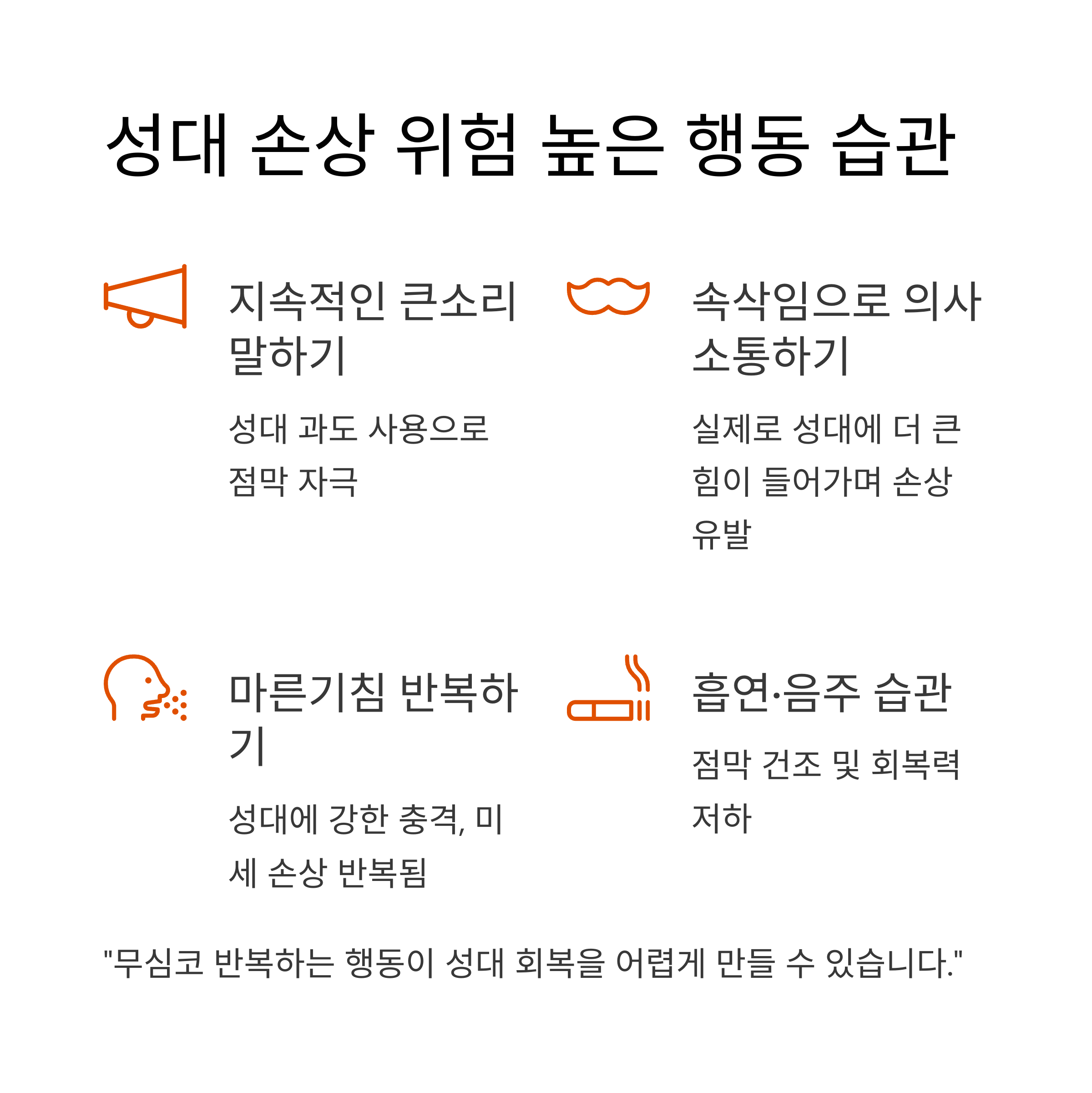 "무심코 반복하는 행동이 성대 회복을 어렵게 만들 수 있습니다."