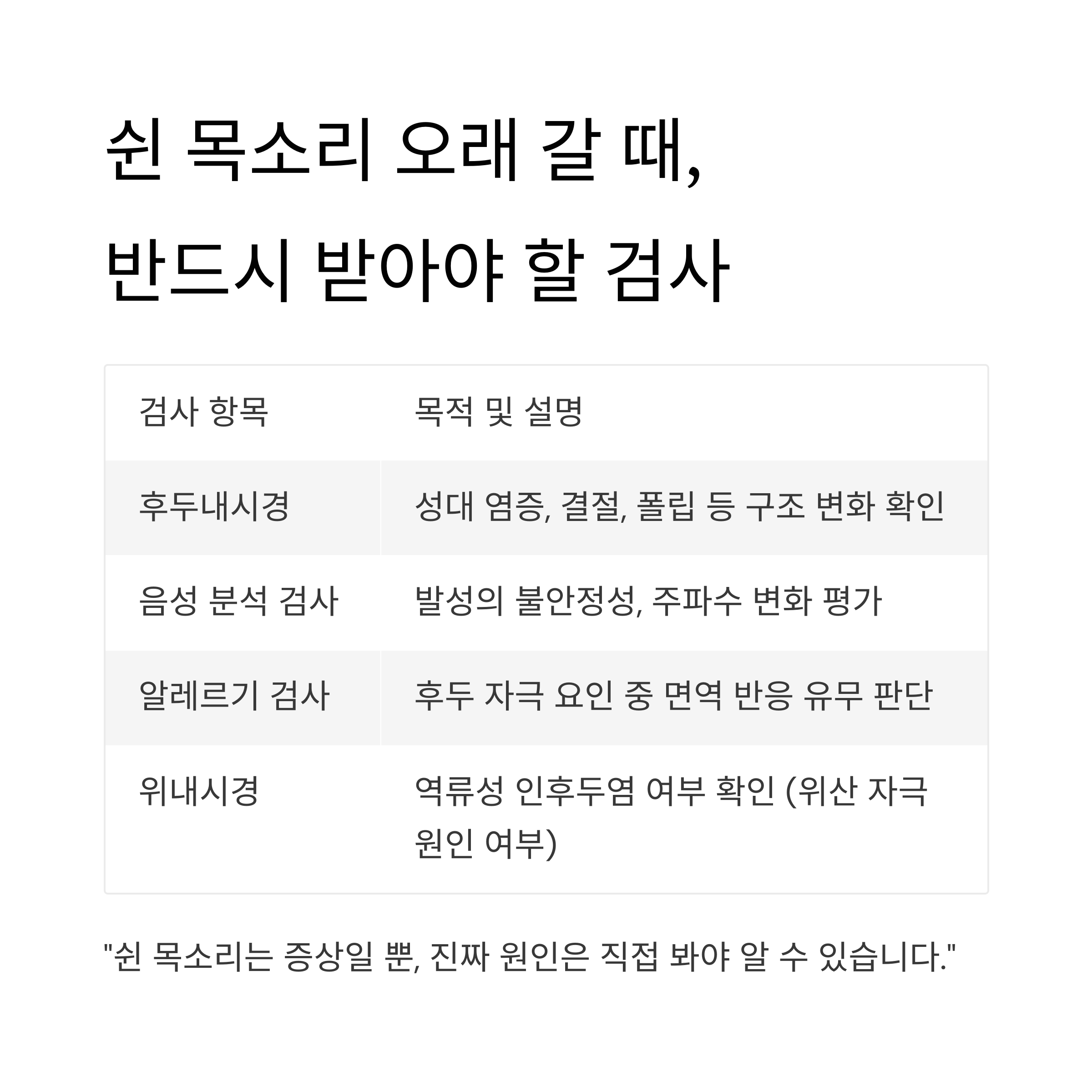 "쉰 목소리는 증상일 뿐, 진짜 원인은 직접 봐야 알 수 있습니다."