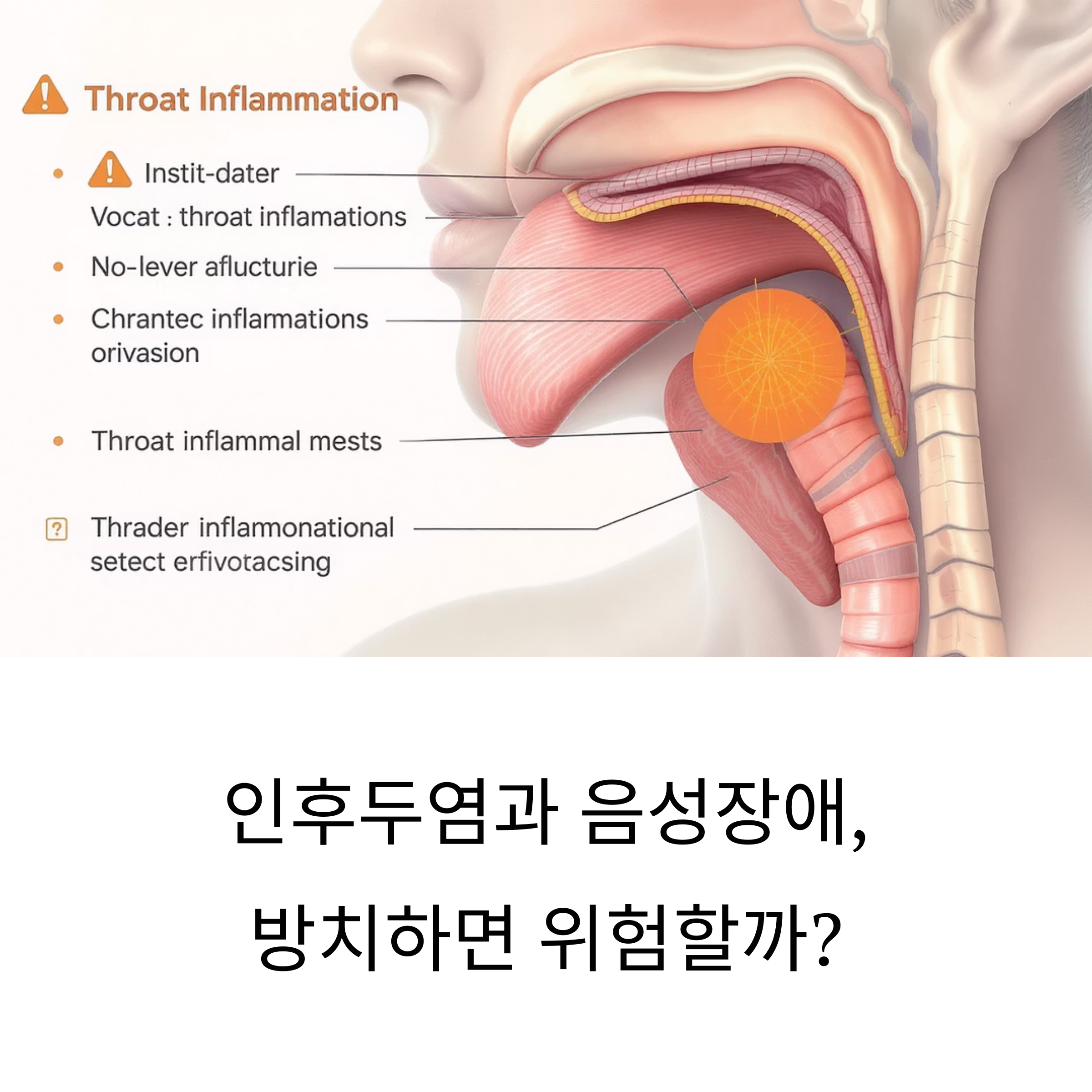 인후두염은 인두뿐 아니라 후두, 즉 성대까지 염증이 퍼질 수 있는 질환입니다.