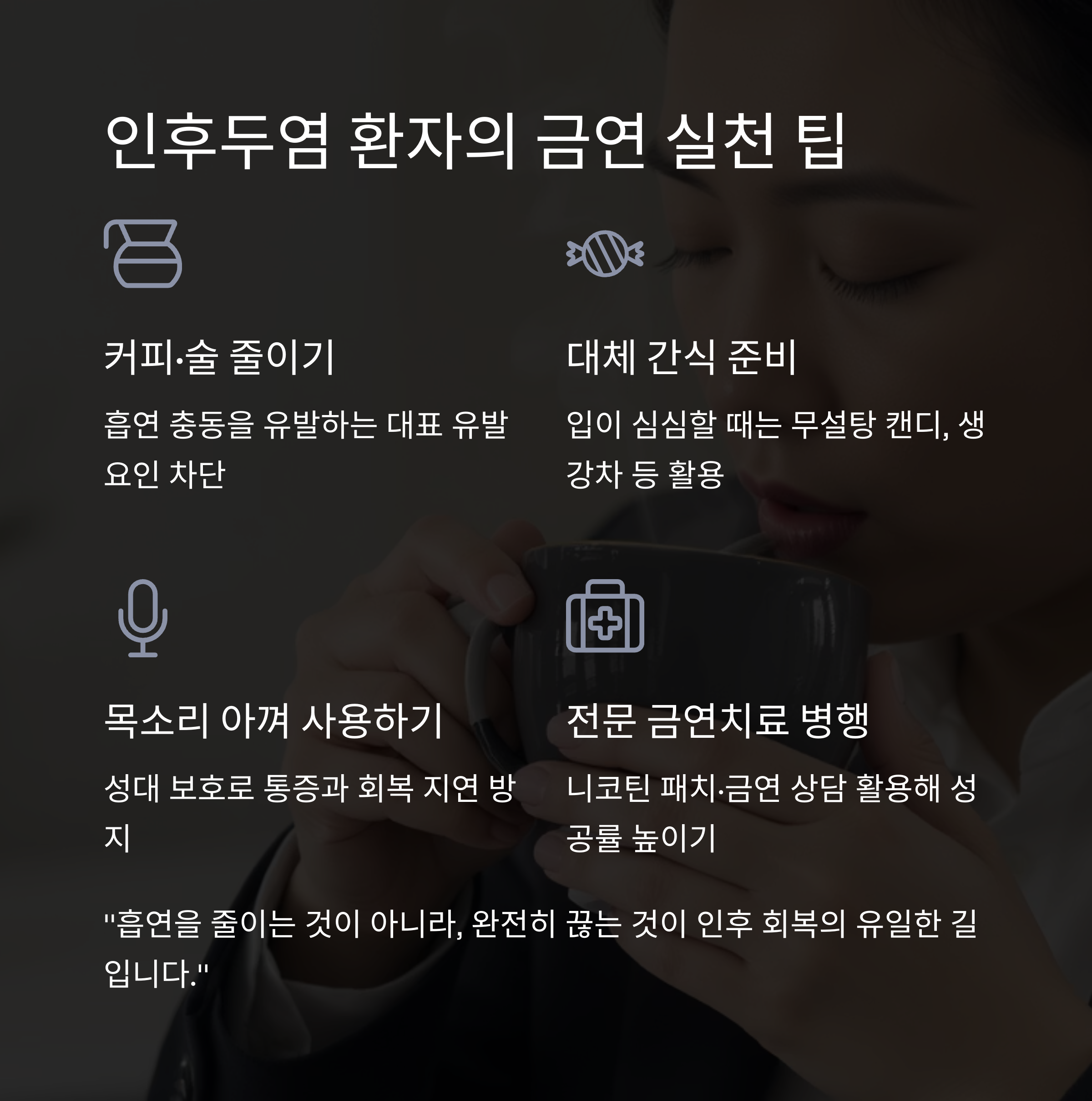 "흡연을 줄이는 것이 아니라, 완전히 끊는 것이 인후 회복의 유일한 길입니다."