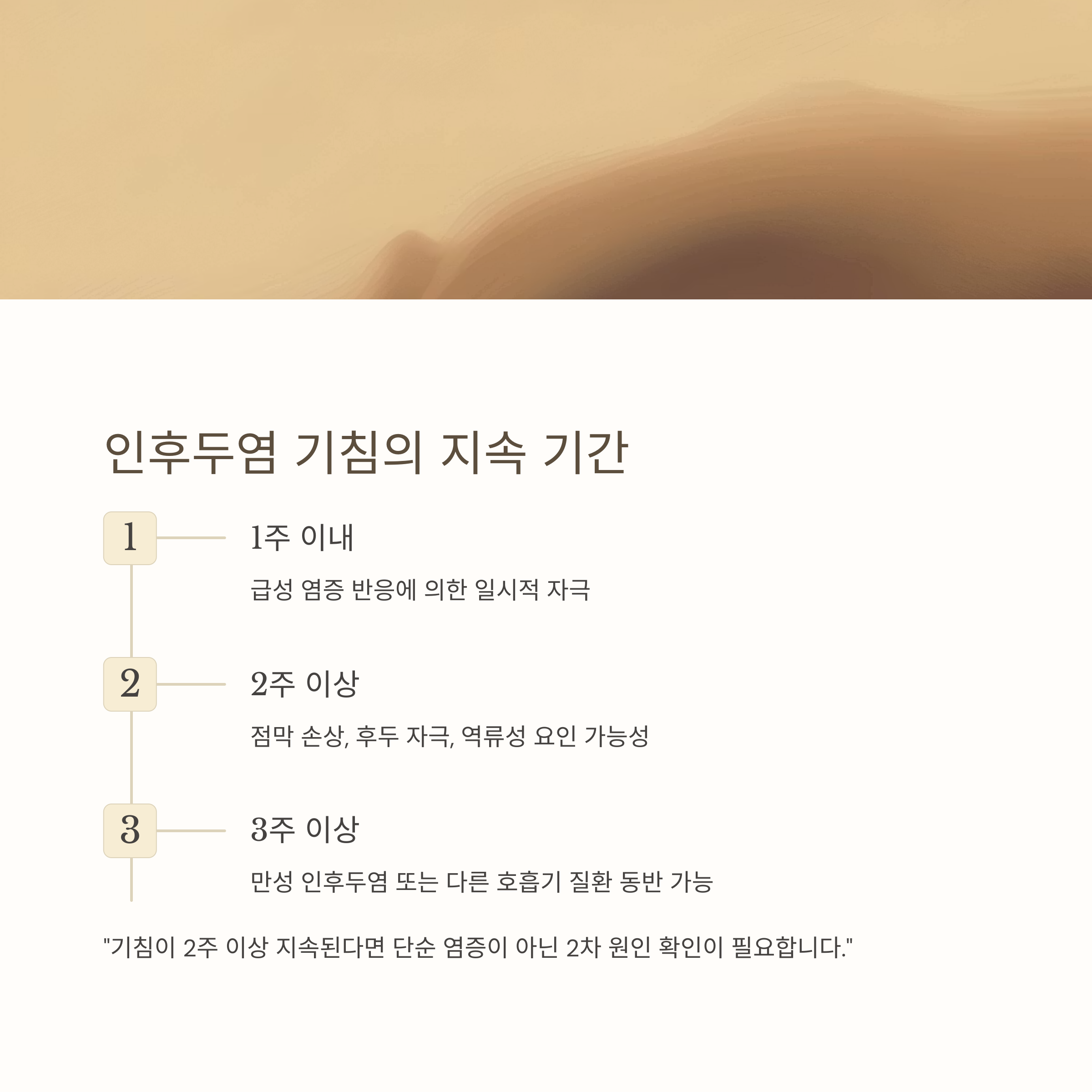 "기침이 2주 이상 지속된다면 단순 염증이 아닌 2차 원인 확인이 필요합니다."