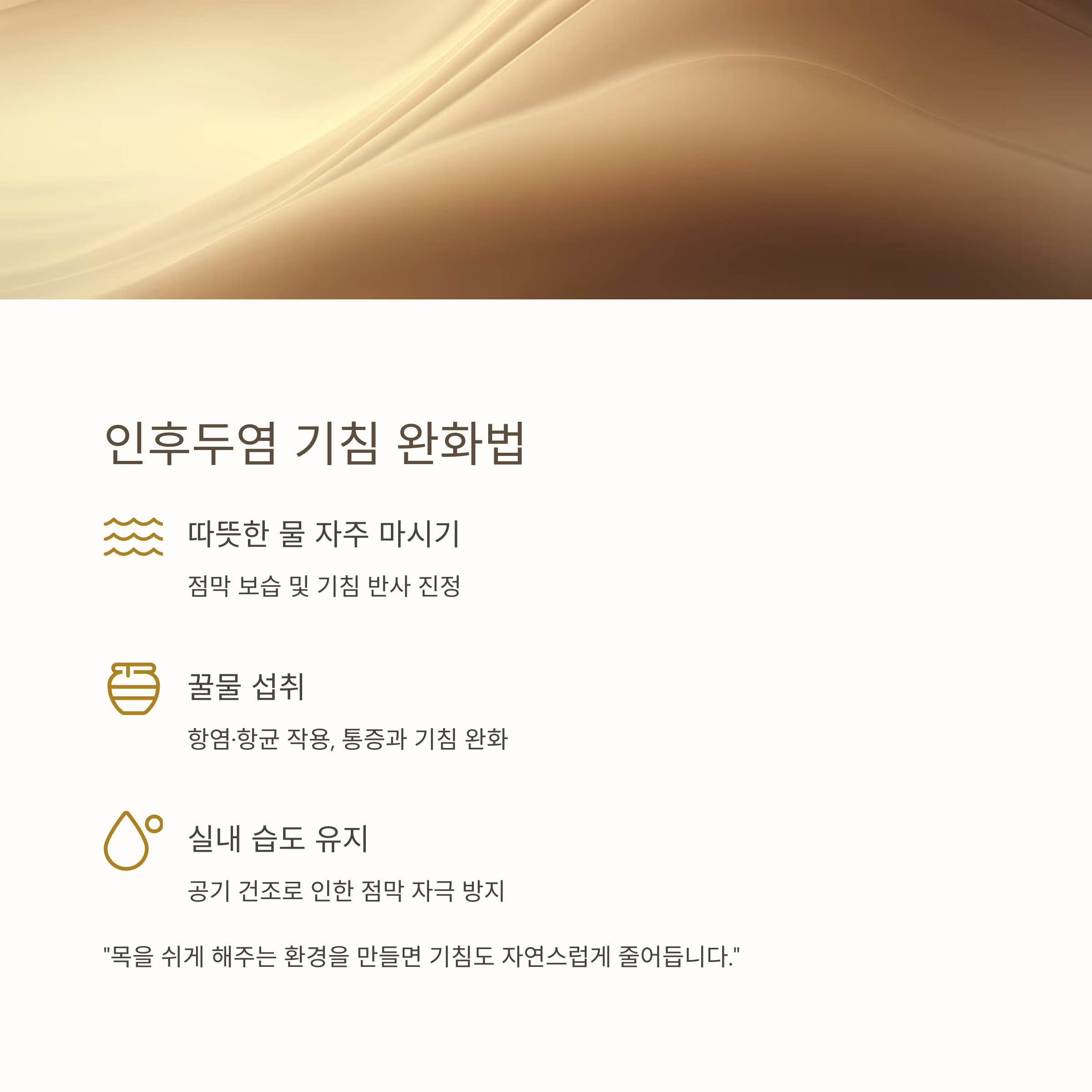 "기침을 줄이고 회복을 앞당기려면, 목이 보내는 신호를 잘 관리하는 것이 가장 중요합니다."