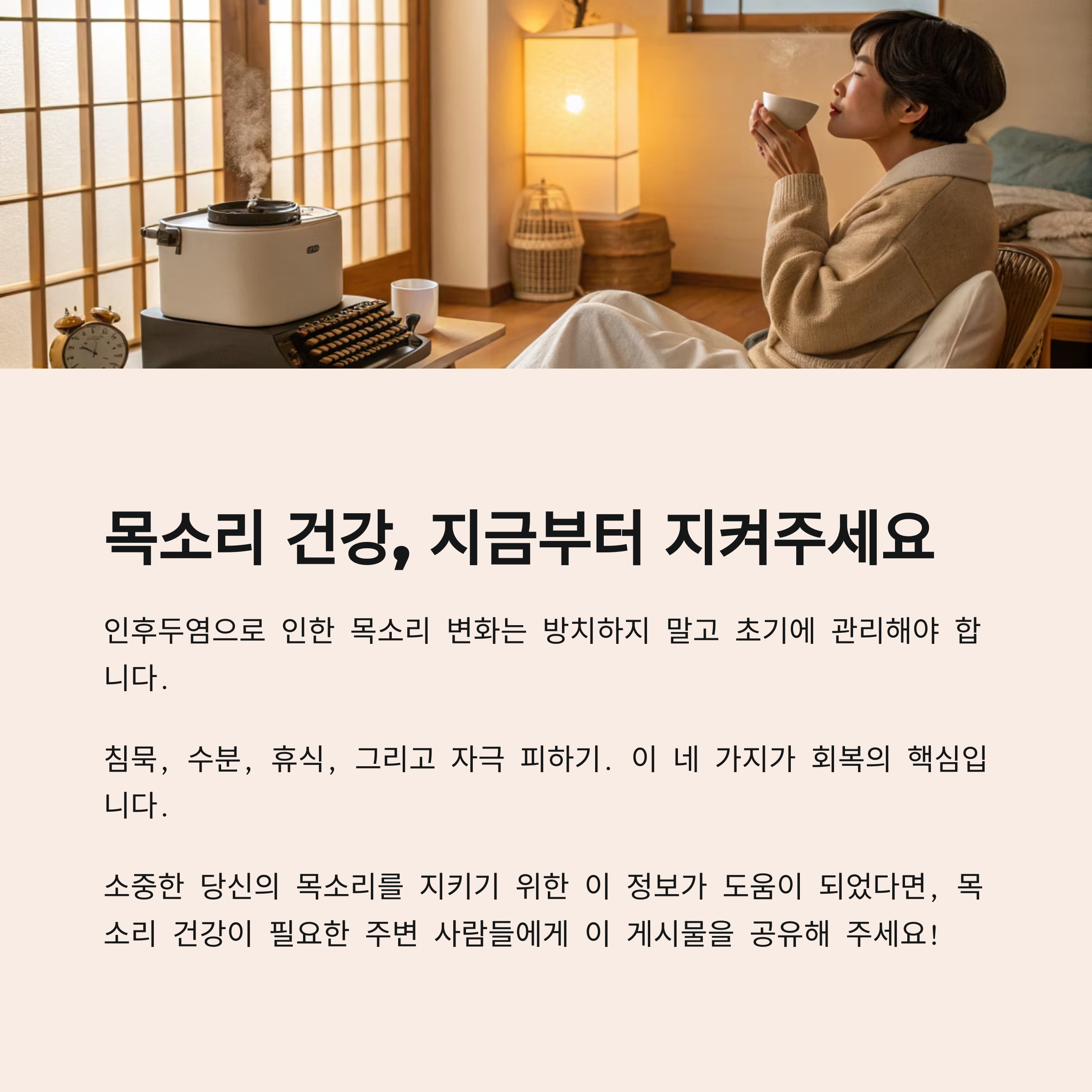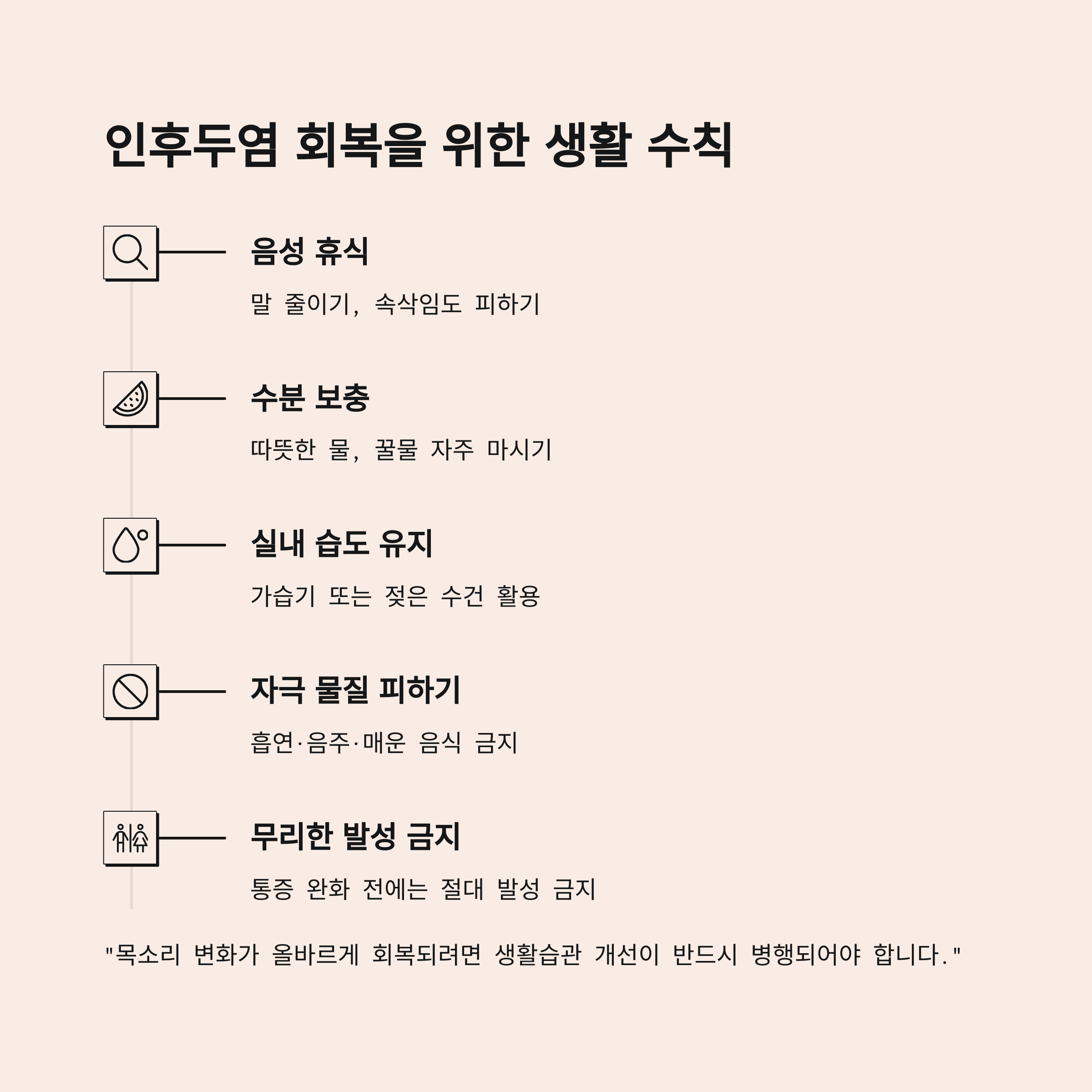 "목소리 변화가 올바르게 회복되려면 생활습관 개선이 반드시 병행되어야 합니다."