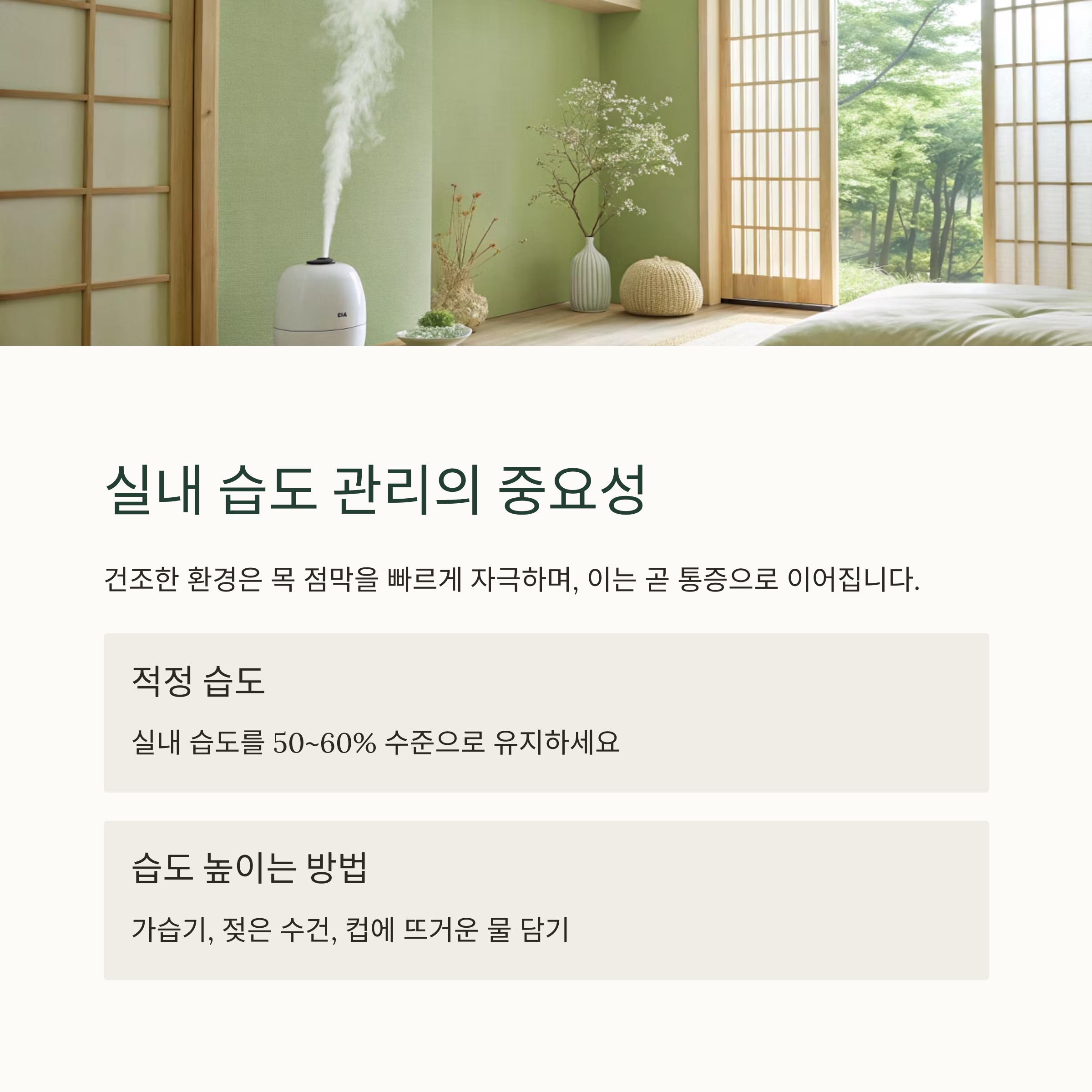 목 점막이 건조하면 통증은 더욱 심해집니다.
