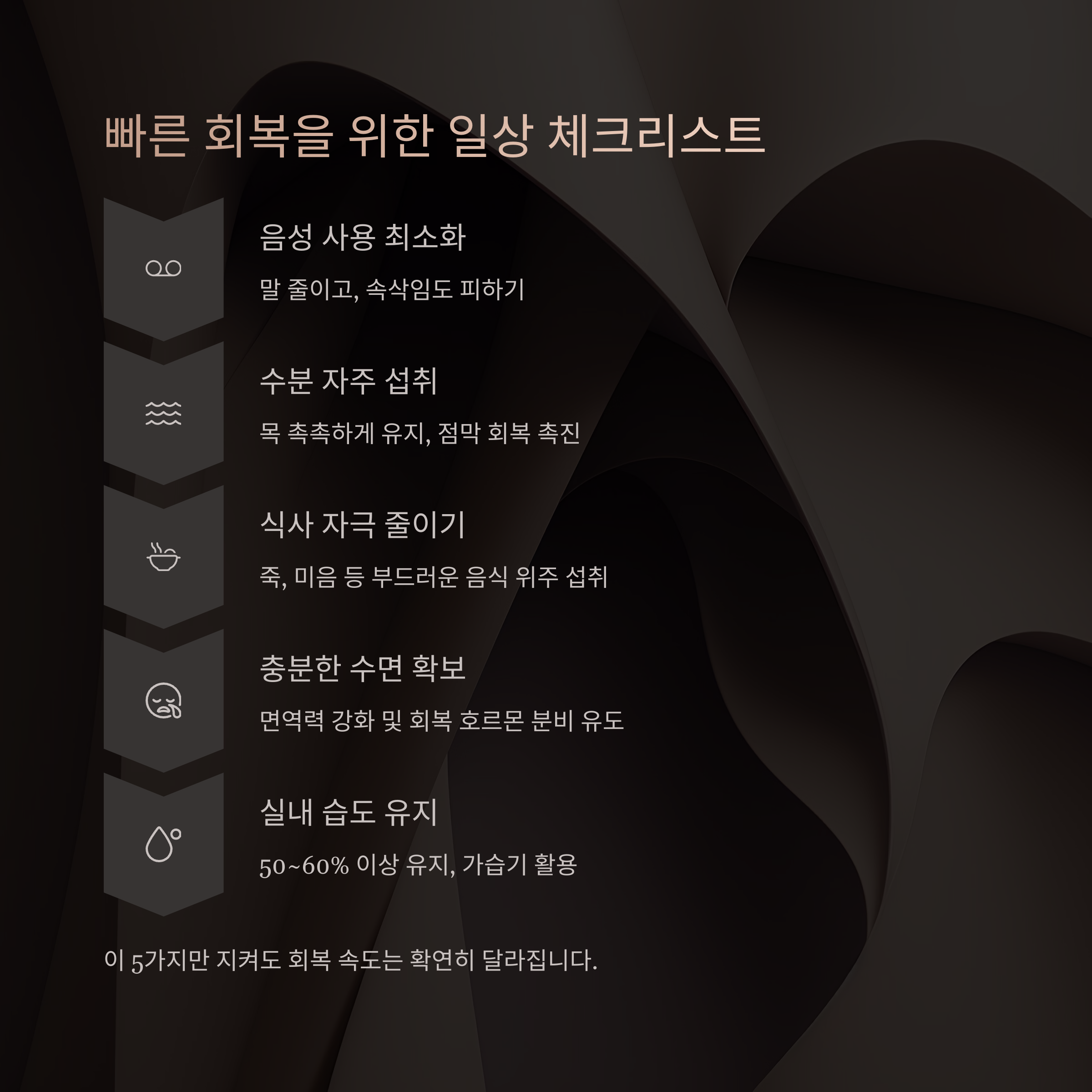 "이 5가지만 지켜도 회복 속도는 확연히 달라집니다."
