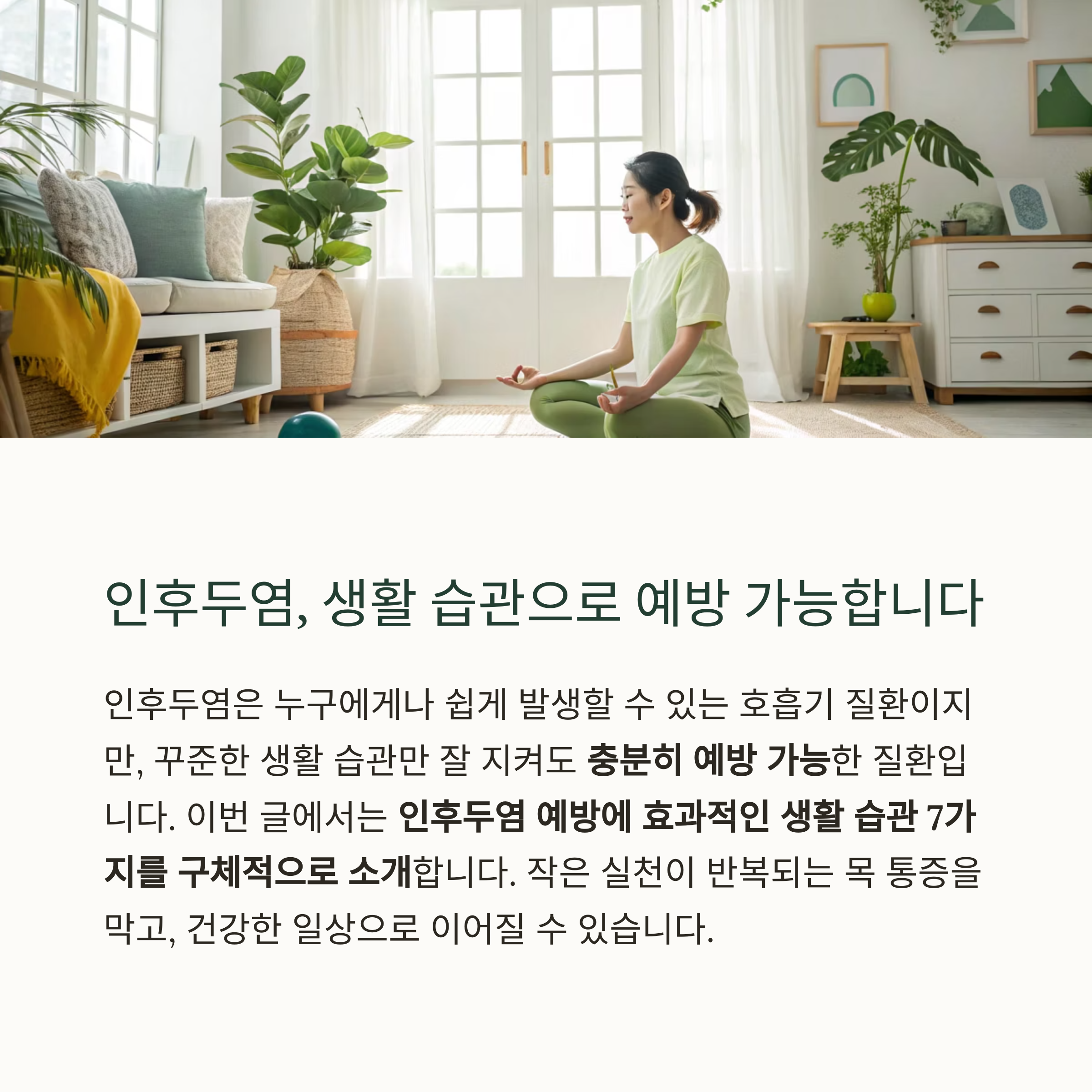 이번 글에서는 인후두염 예방에 효과적인 생활 습관 7가지를 구체적으로 소개합니다.