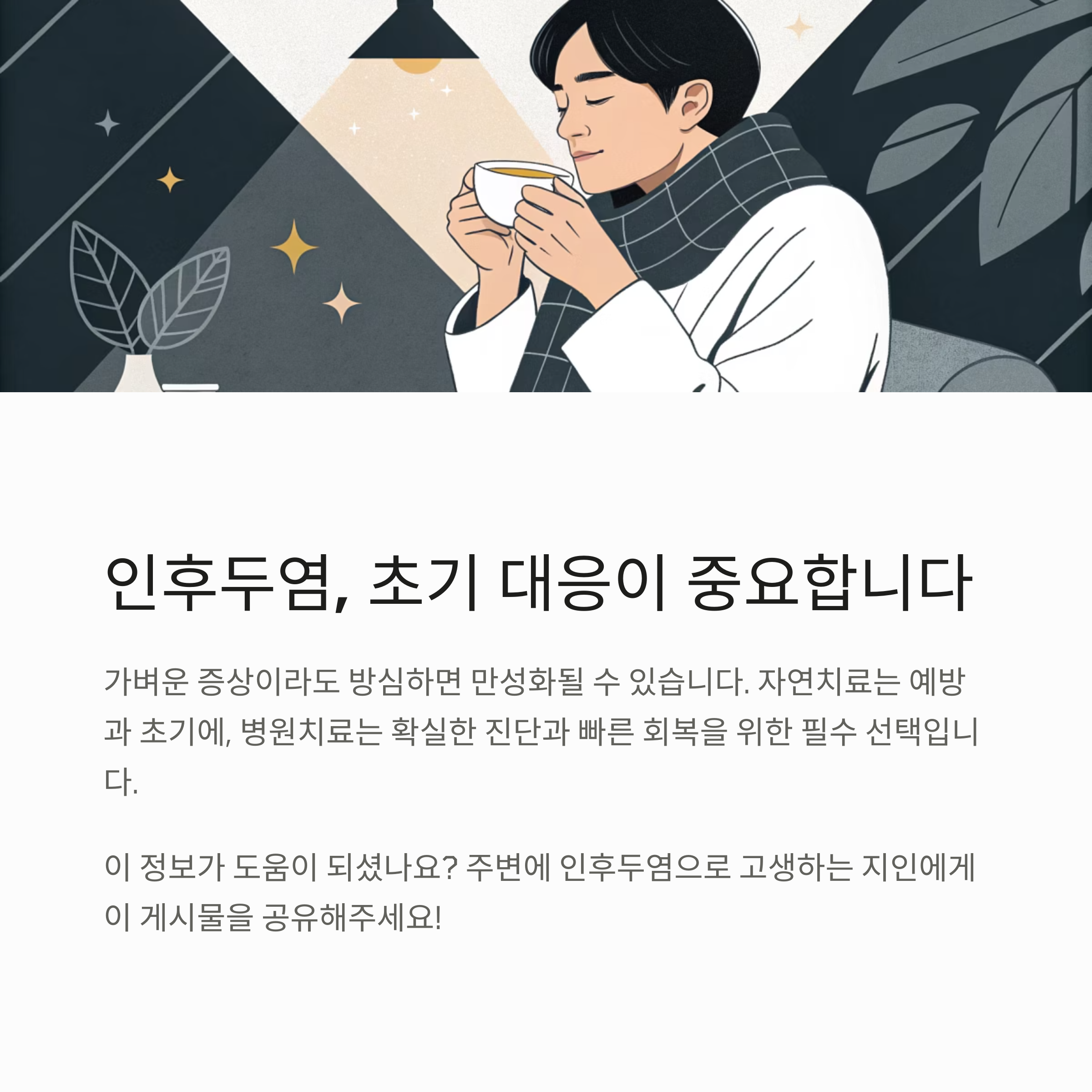 인후두염은 자연치료와 병원치료를 병행하는 전략이 가장 효과적일 수 있습니다.