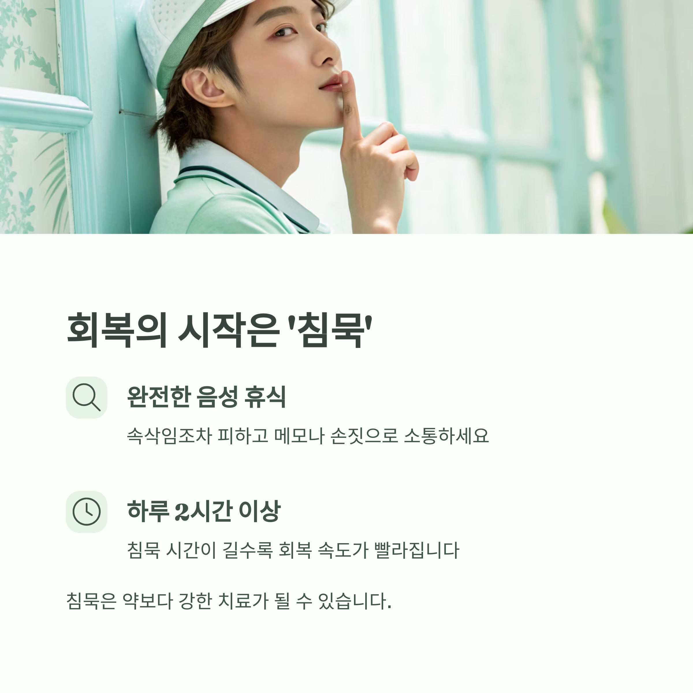 말을 줄이는 것은 단순한 휴식이 아닌, 회복을 앞당기는 치료 행동입니다.