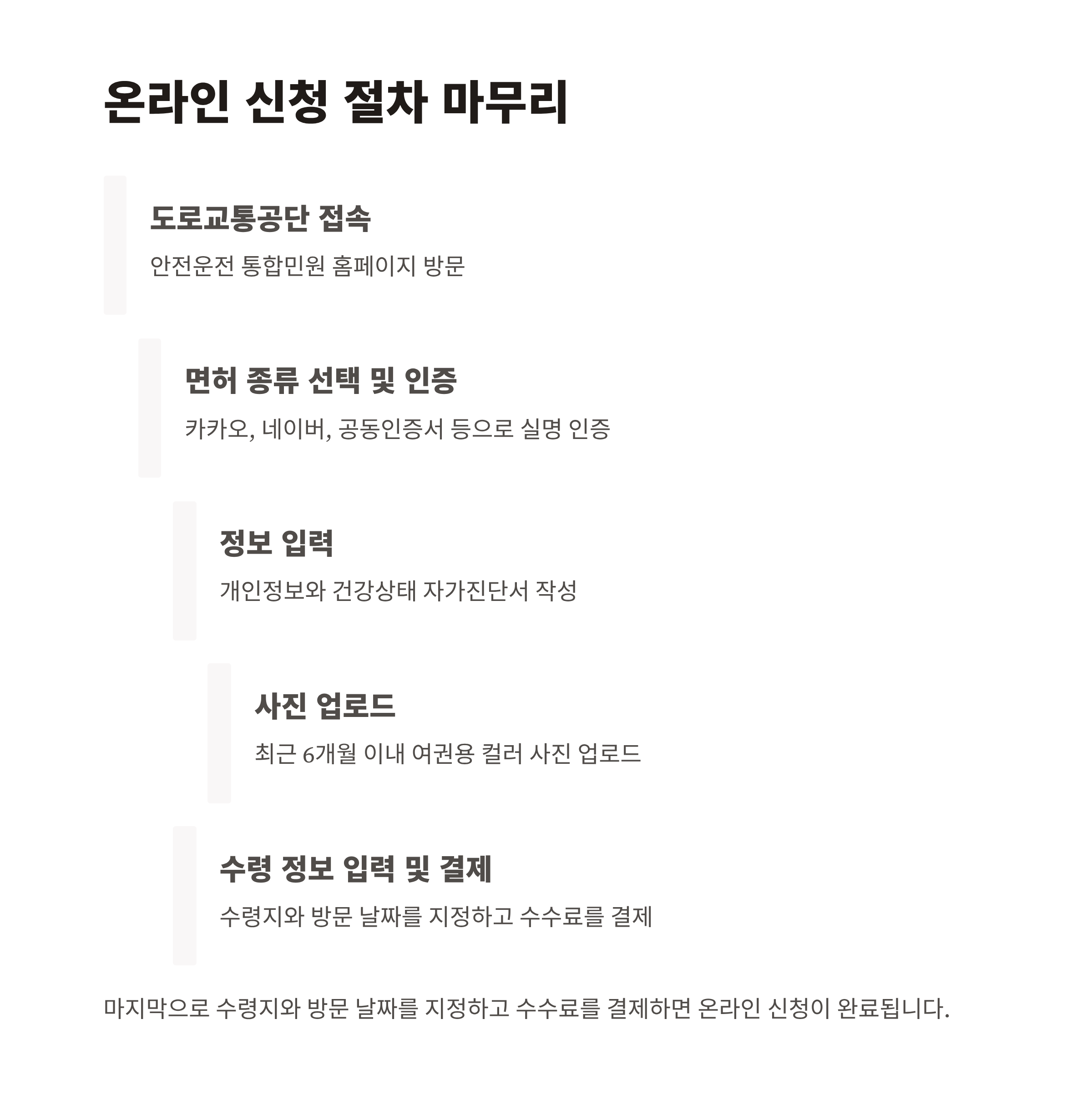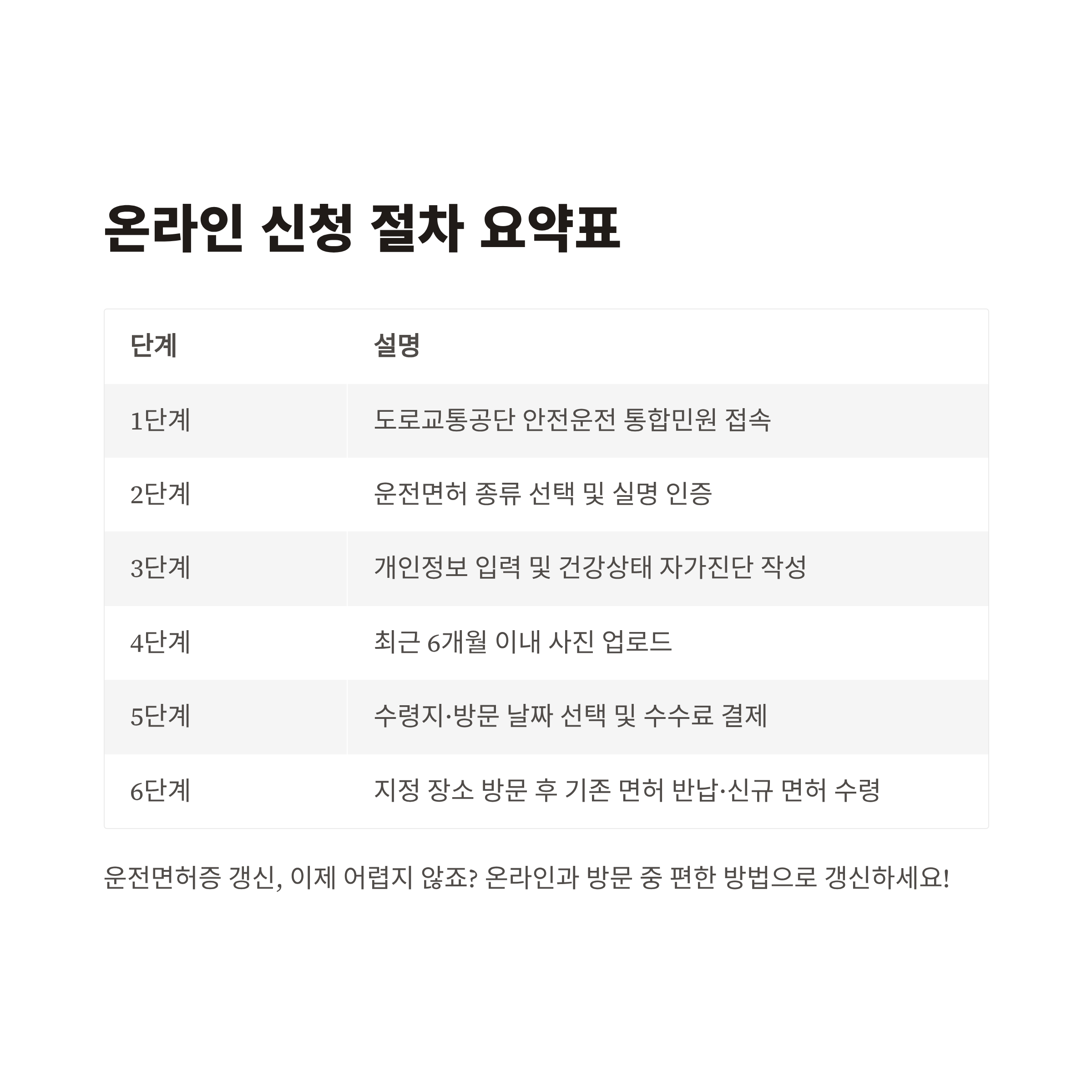 | 6단계 | 지정 장소 방문 후 기존 면허 반납·신규 면허 수령 |