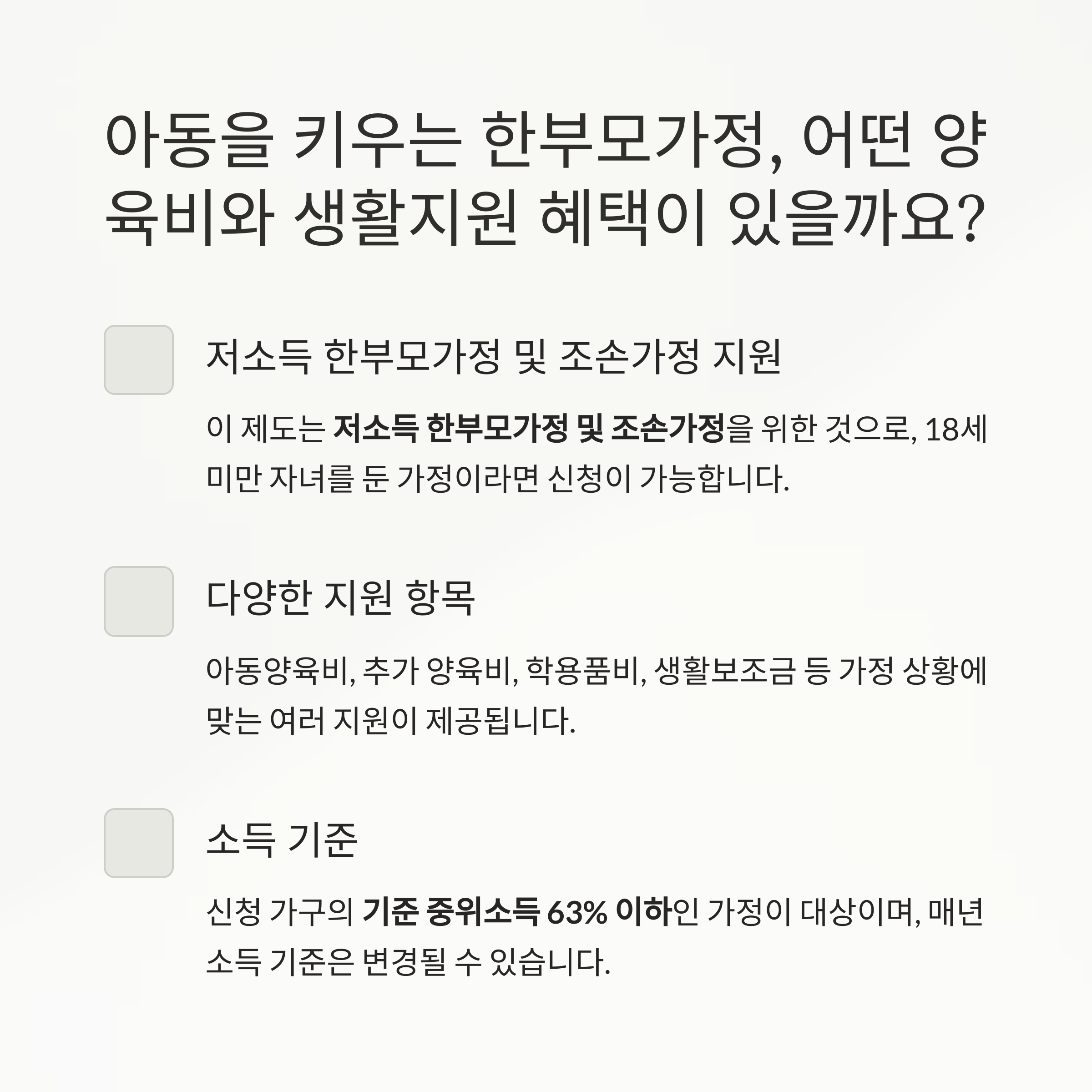 아동을 키우는 한부모가정, 어떤 양육비와 생활지원 혜택이 있을까요?