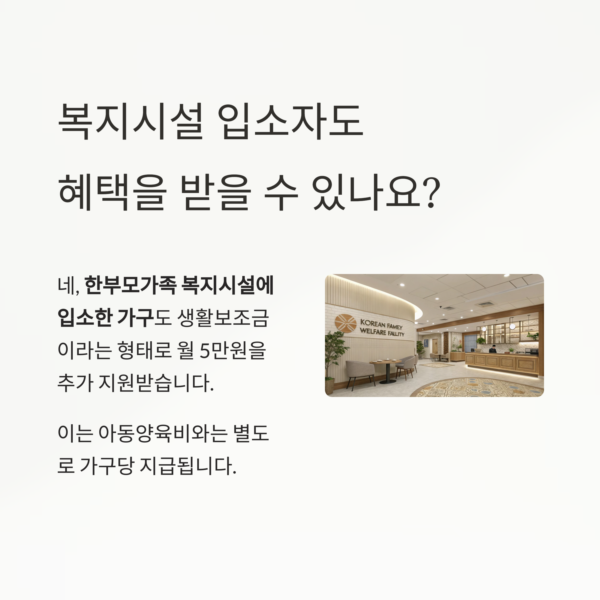 | 생활보조금 | 한부모 복지시설에 입소 중인 가구 |