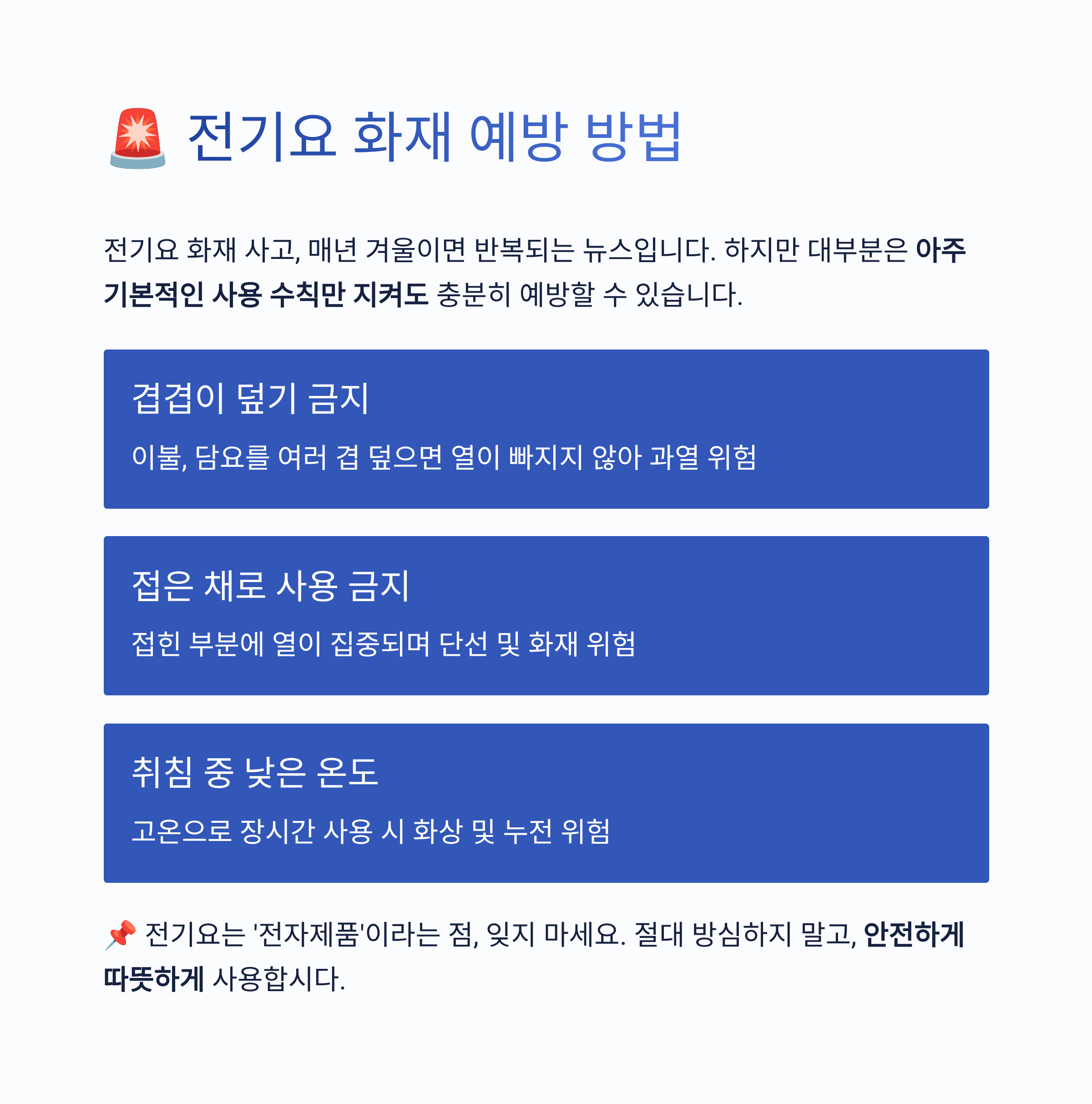 🚨 전기요 화재 예방 방법