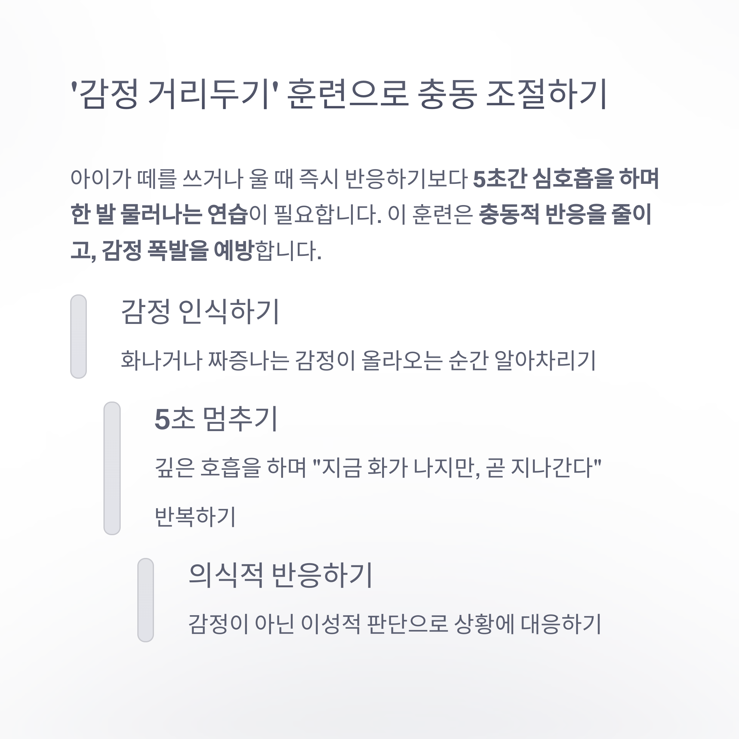 이 훈련은 충동적 반응을 줄이고, 감정 폭발을 예방합니다.