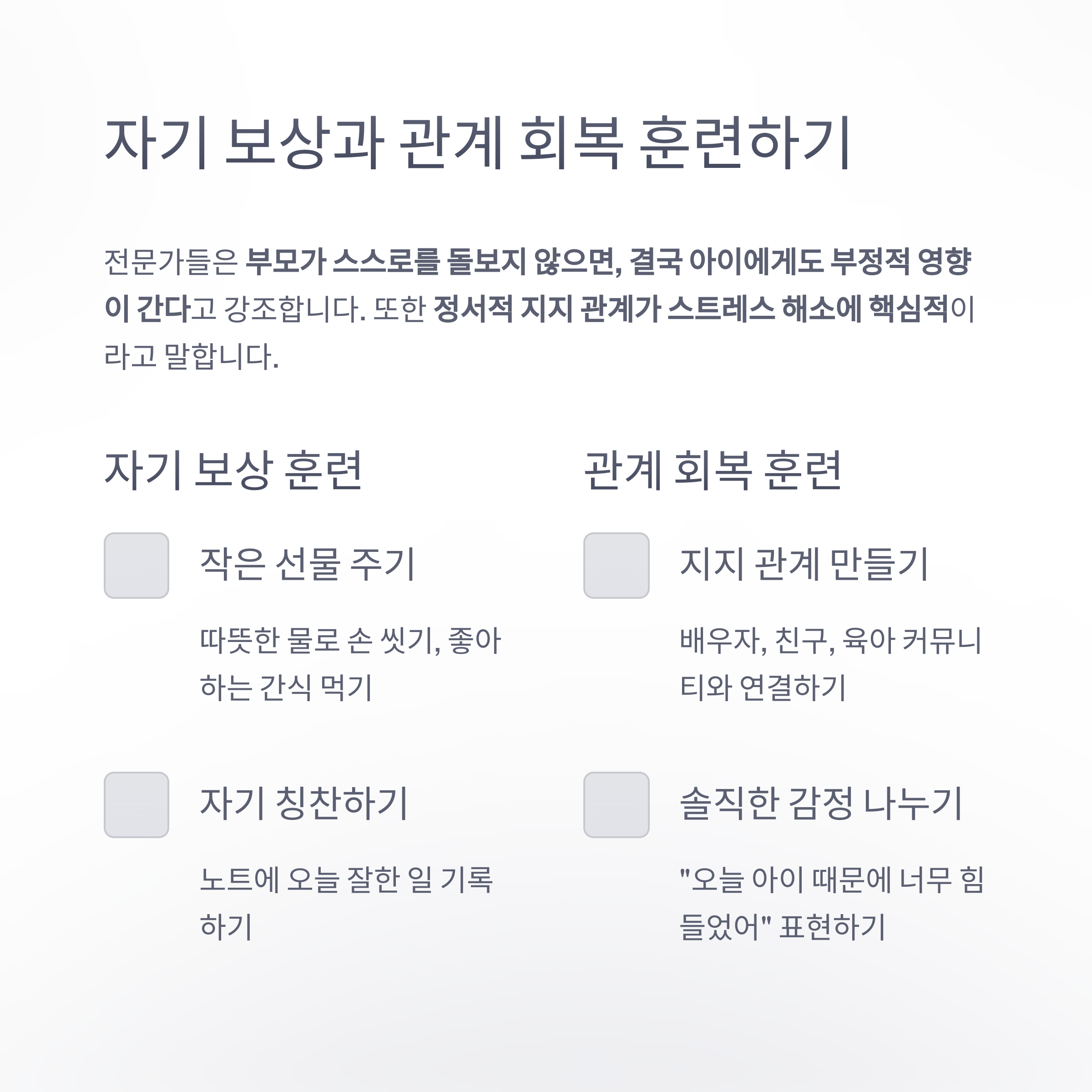이 작은 보상이 반복되면 육아 스트레스에 대한 저항력이 높아집니다.