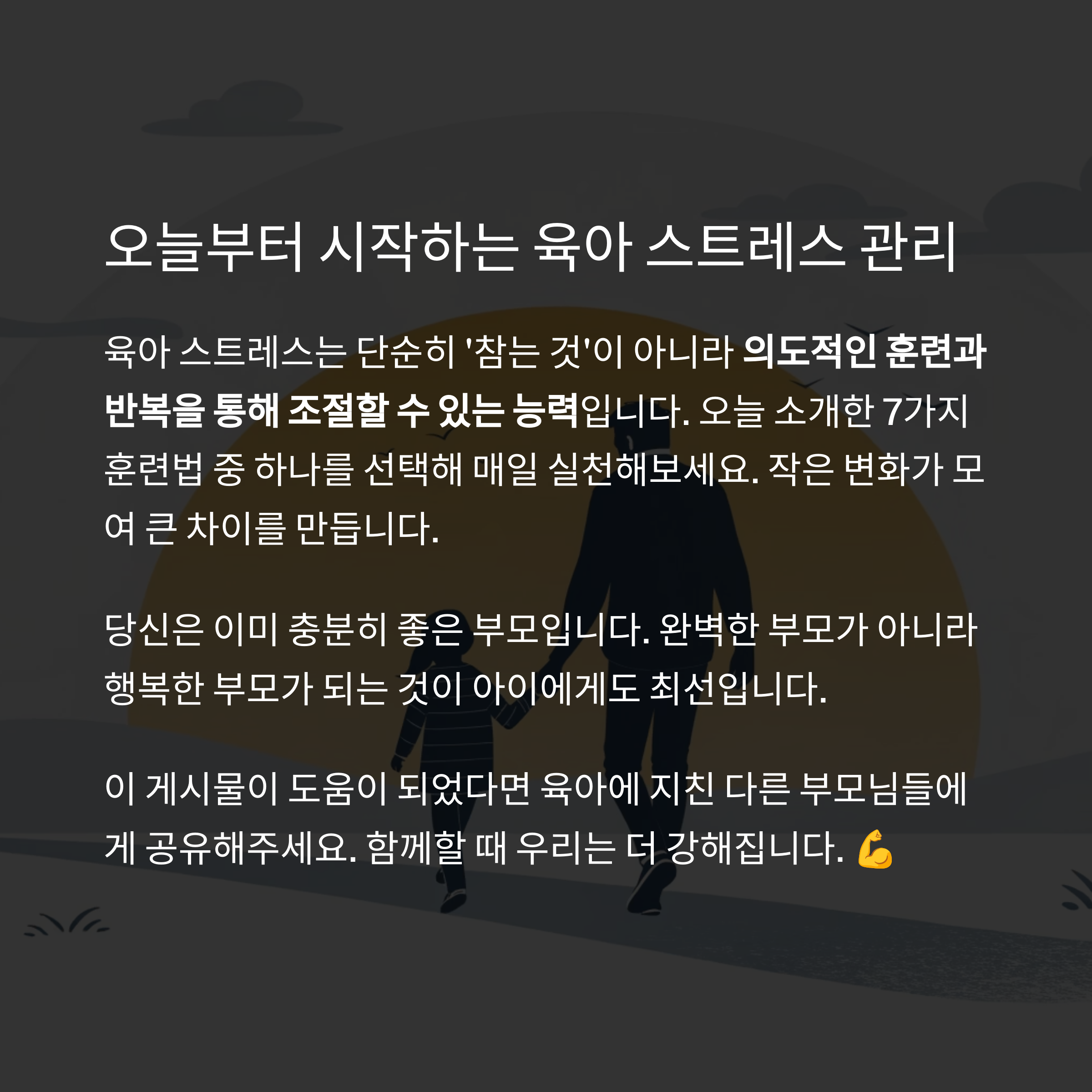 육아 스트레스 극복 훈련 7가지 방법을 소개합니다.