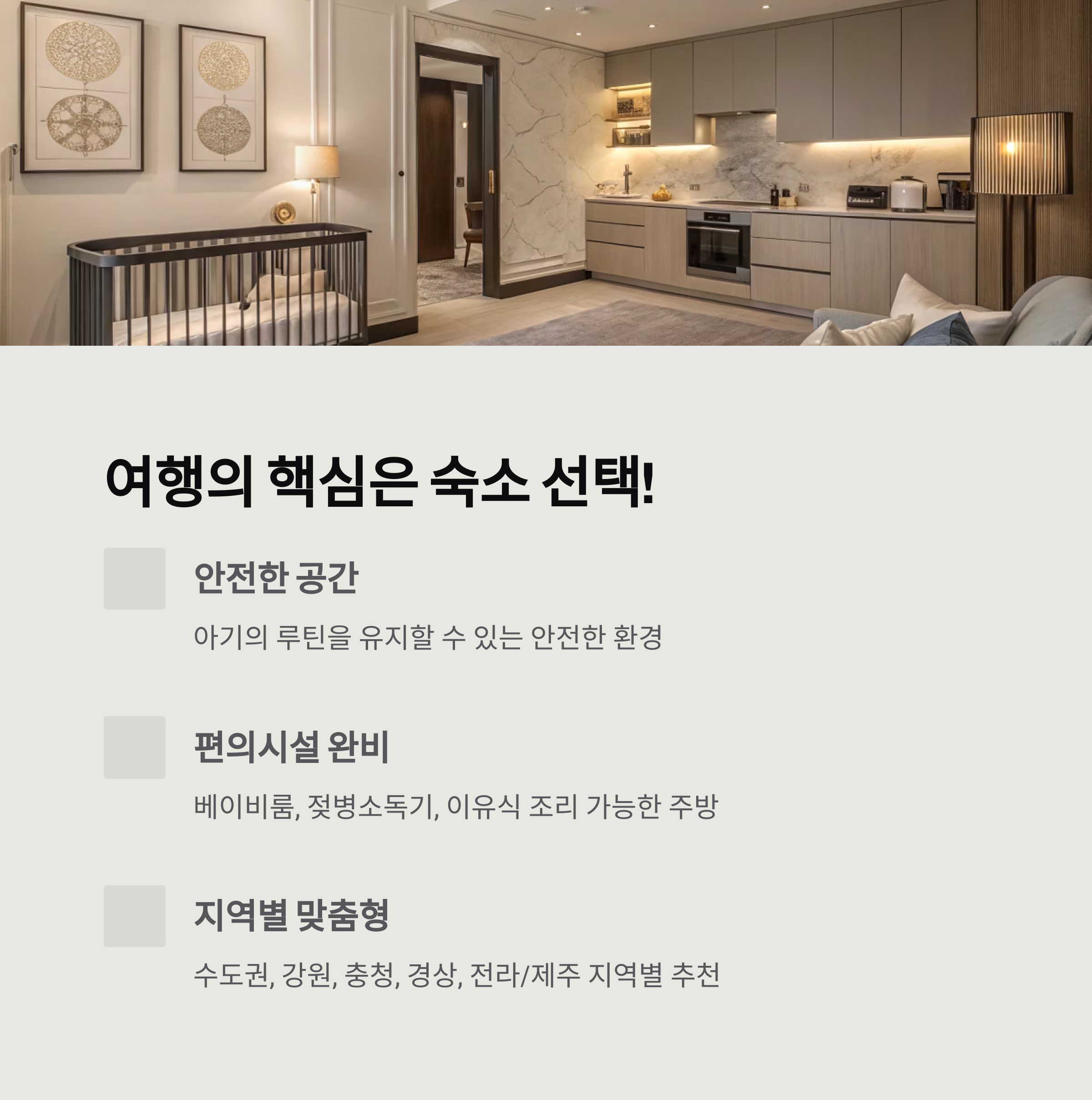 아기와 함께하는 여행은 목적지 못지않게 숙소가 매우 중요합니다