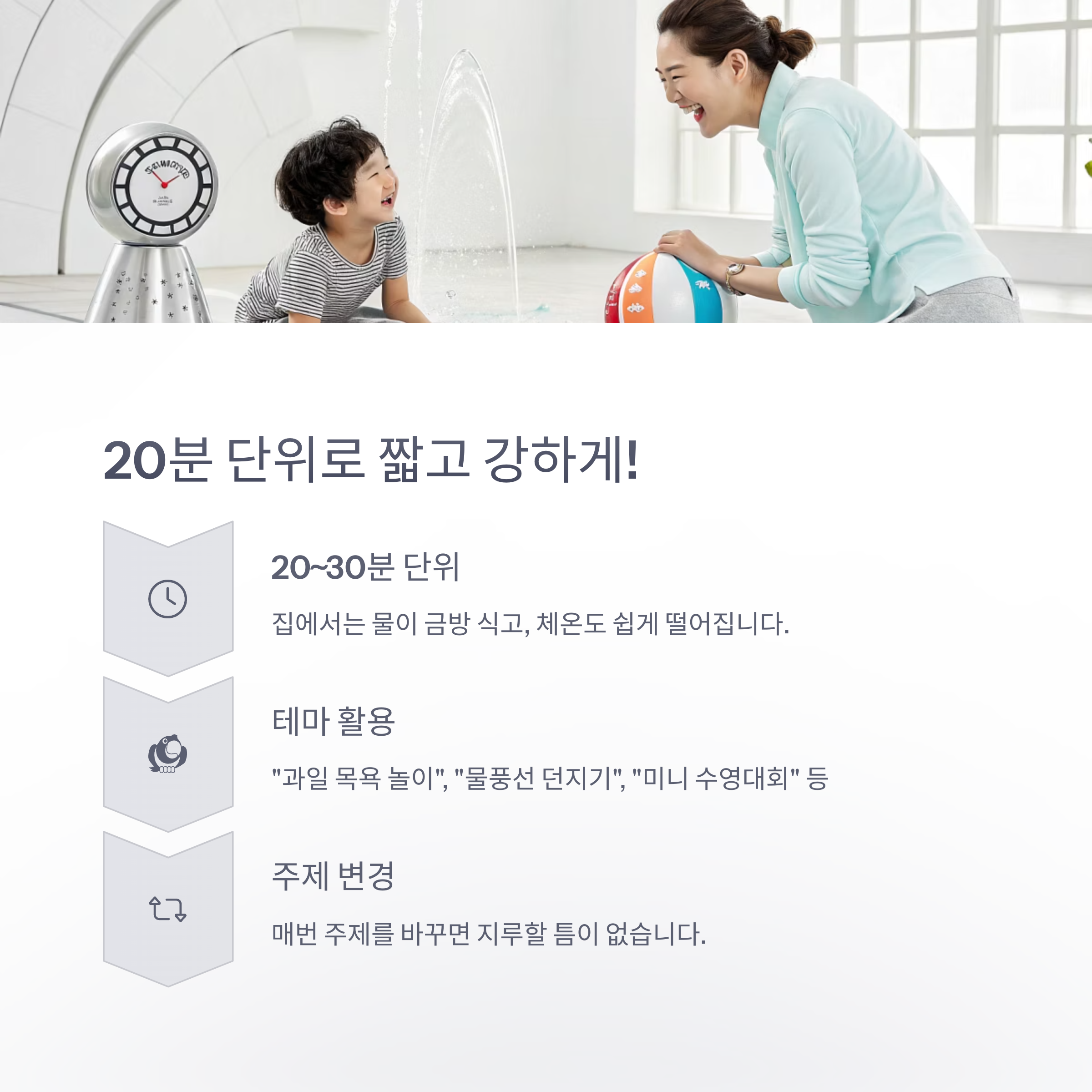 짧고 다양한 물놀이 테마를 활용해 주세요.